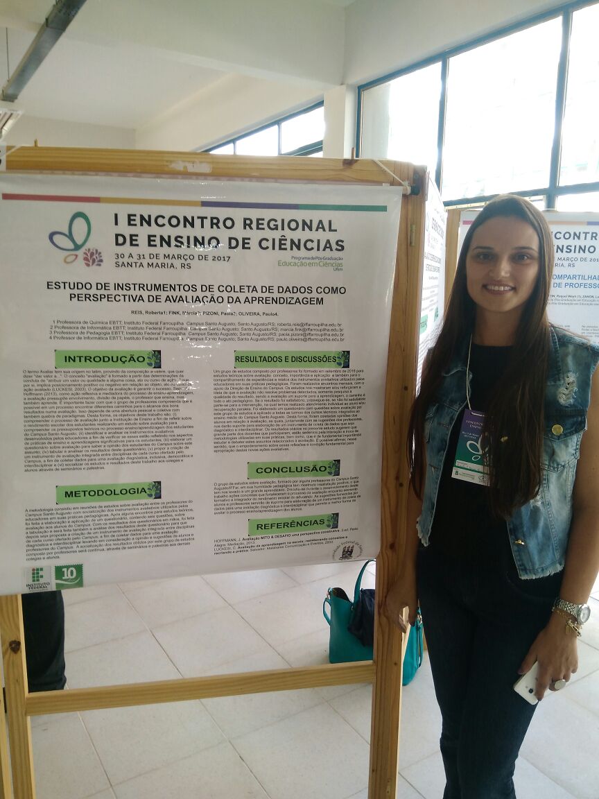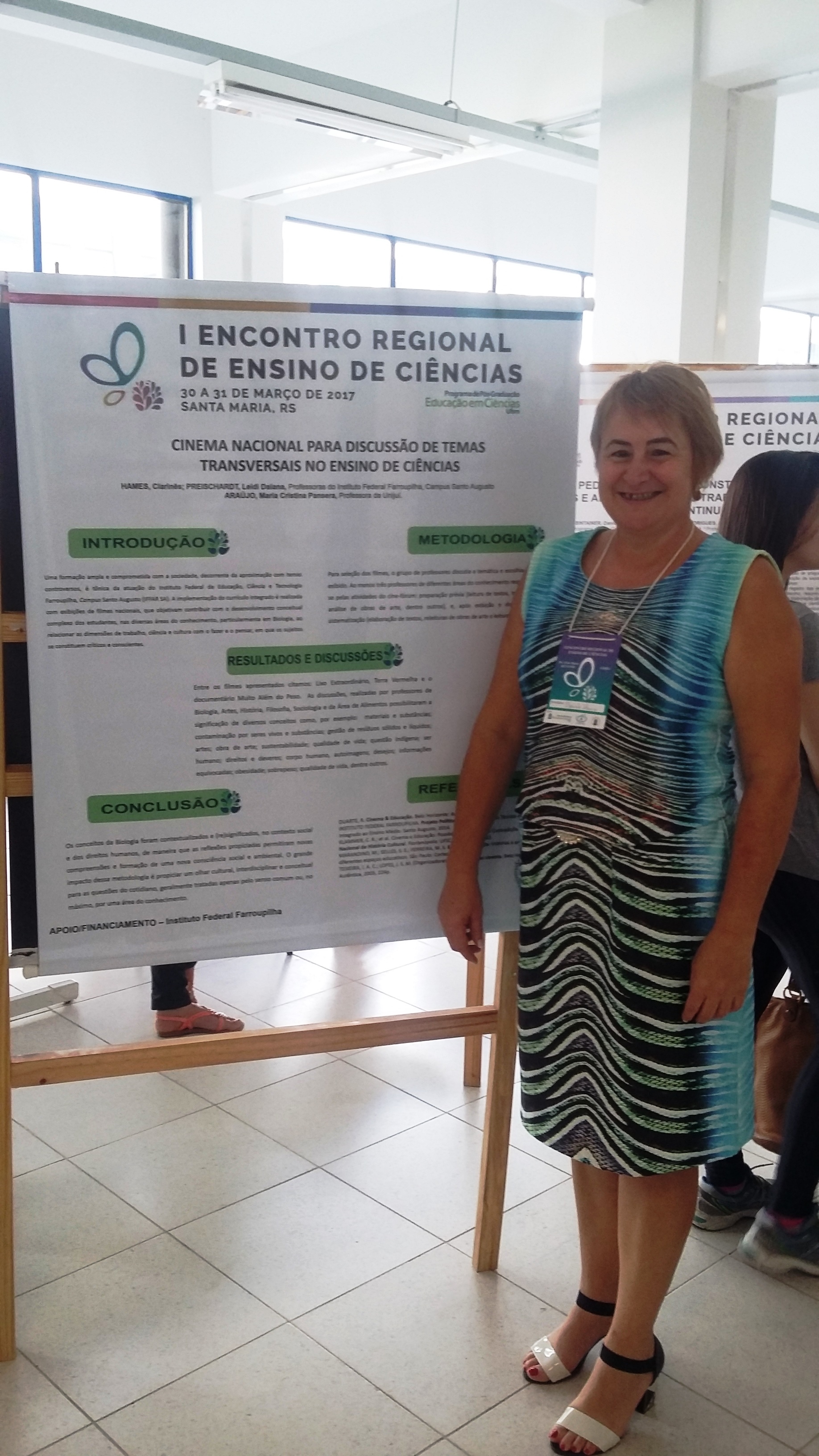 As professoras Roberta e Clarinês apresentaram respectivamente os seguintes trabalhos, na forma de pôster: “Estudo de instrumentos de coleta de dados como perspectiva de avaliação da aprendizagem” e “Cinema Nacional para discussão de temas transversais no ensino de Ciências”.