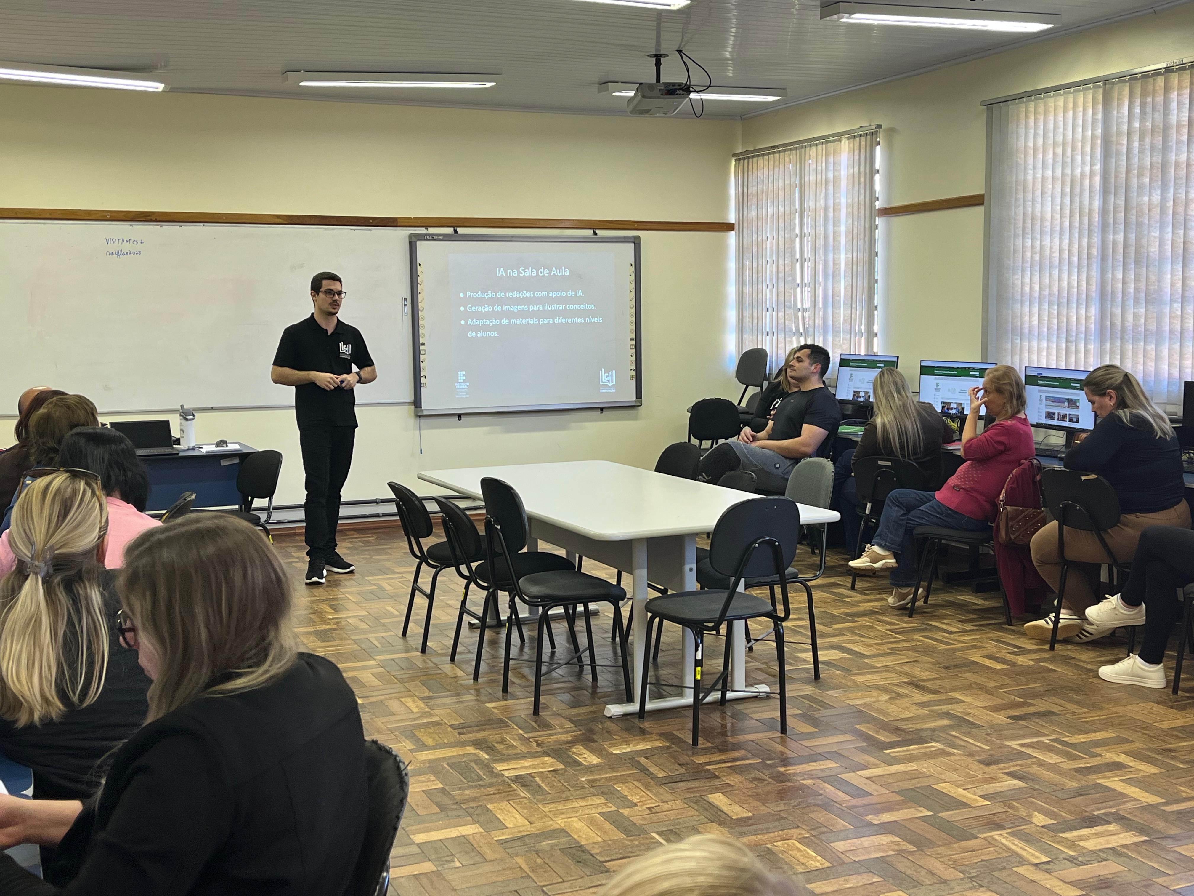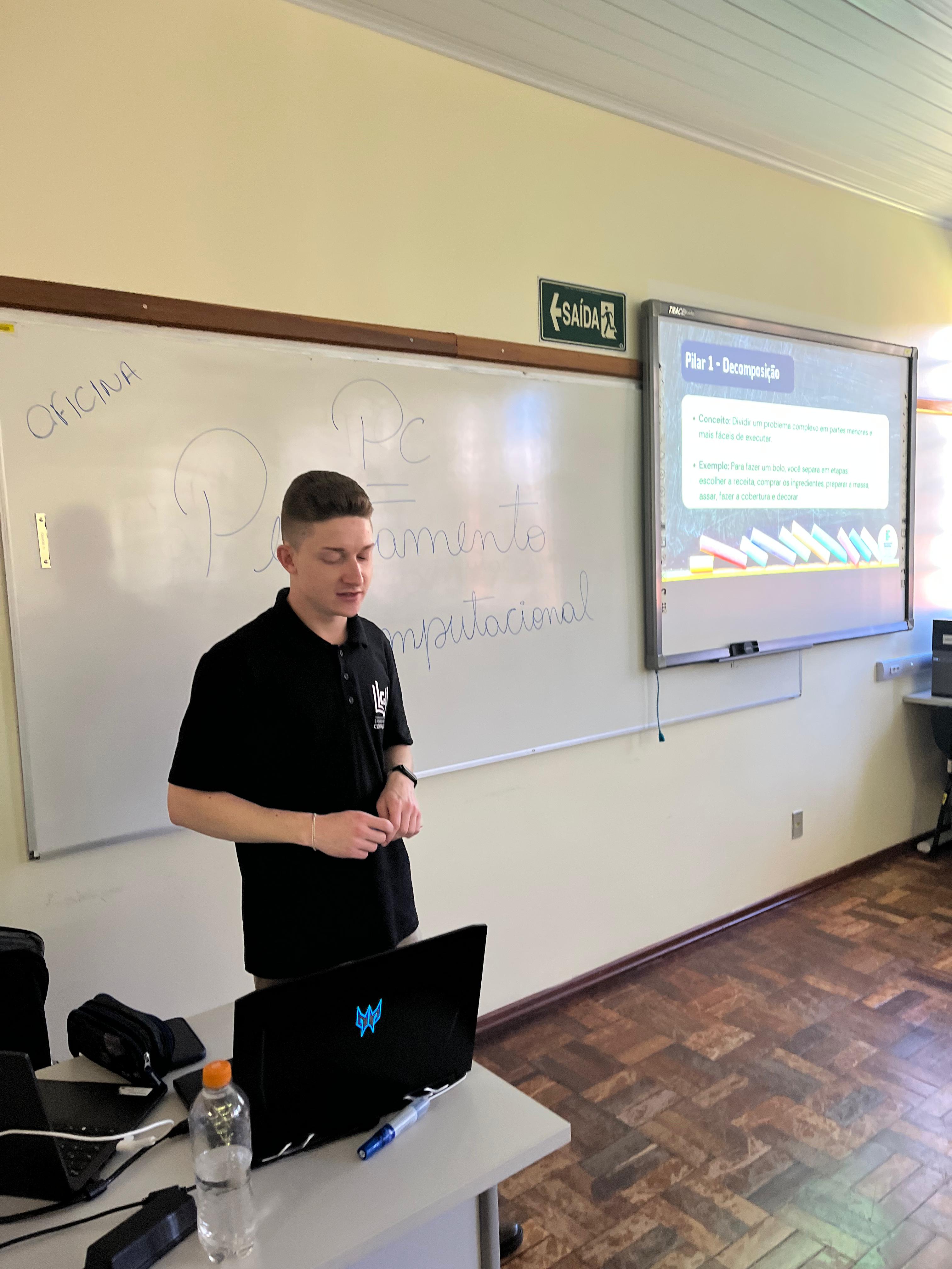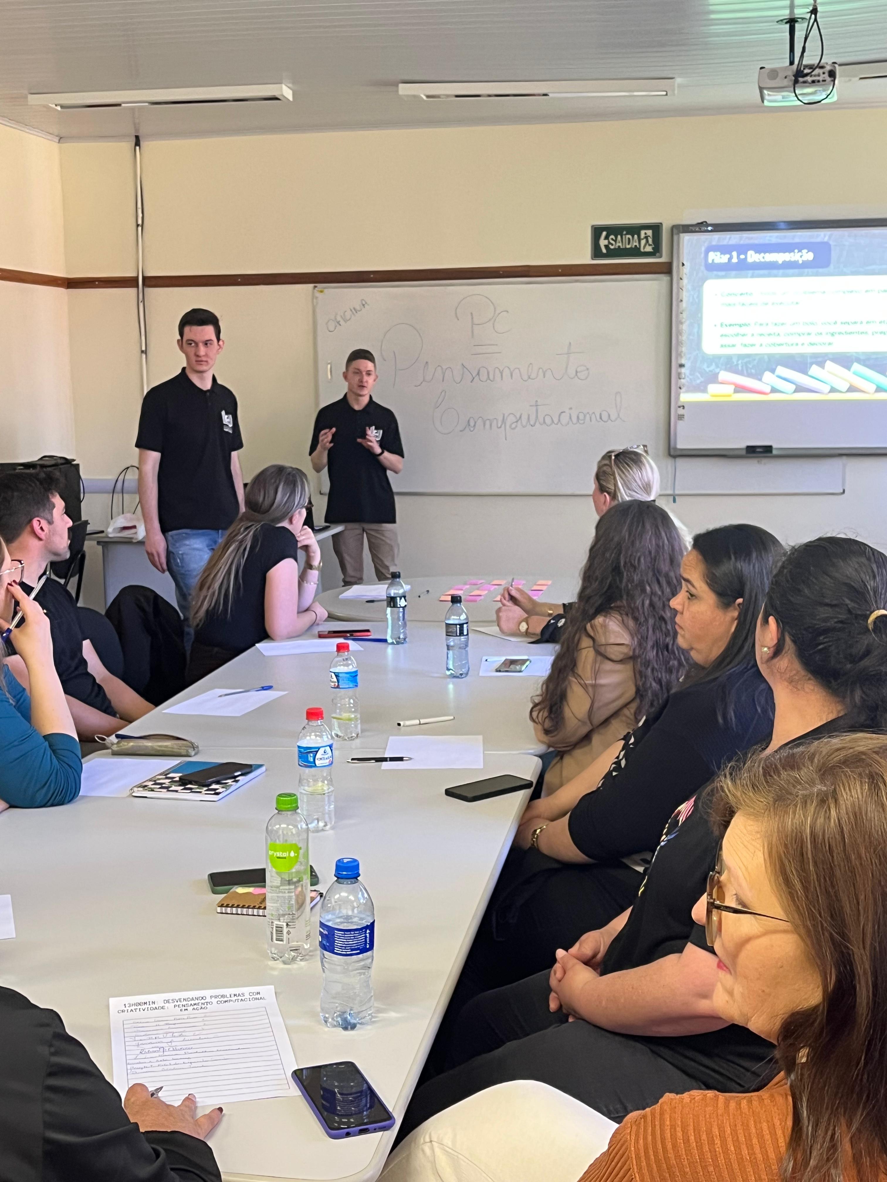 As oficinas foram realizadas nos laboratórios de informática do IFFar – Campus Santo Augusto e contaram com a participação de professores dos 21 municípios da região celeiro. Os acadêmicos, Guilherme Julian Scherer e Michel Arthur Hirt, ministraram a oficina com o tema “Desvendando problemas com criatividade: pensamento computacional em ação”; a acadêmica, Eduarda Inês Klein, ministrou a oficina “Mãos na massa com tecnologia: ferramentas digitais para desenvolver o pensamento computacional; o acadêmico, Allisson Veiga dos Santos, abordou o tema “O que tem dentro do computador? Explorando o mundo digital através dos seus componentes físicos”; e Luan Delaflora Guth ministrou oficina sobre “Inteligência Artificial na sala de aula: criando com IA generativa”.