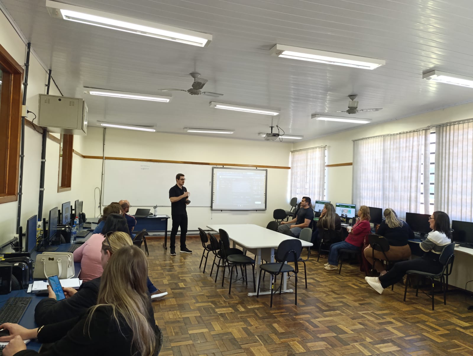 A abertura do Workshop aconteceu às 8h da manhã do dia 24, no auditório Feliciano Paulo Guterrez de Moura, na Prefeitura Municipal de Santo Augusto, seguida pela palestra sobre “Computação na Educação Básica”, ministrada pelo assessor pedagógico da SME e egresso da Licenciatura em Computação do IFFar – Campus Santo Augusto, Uianes Biondo.