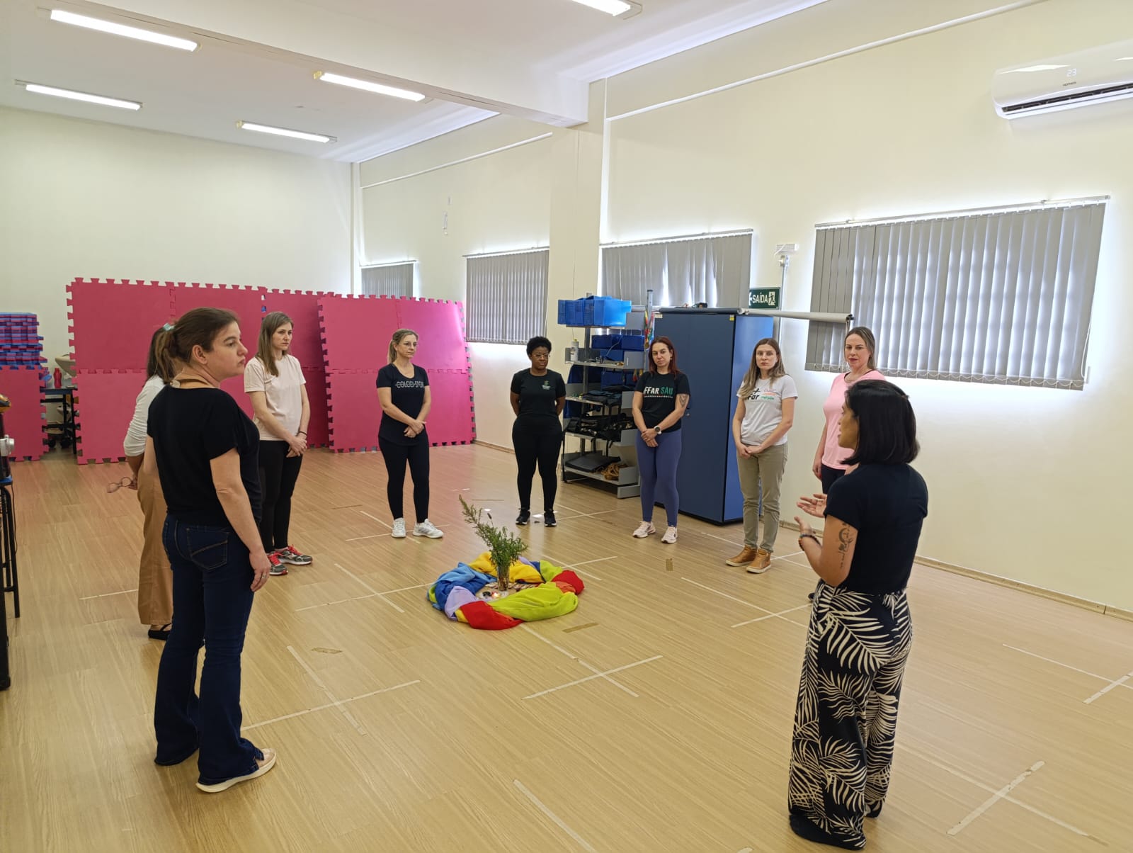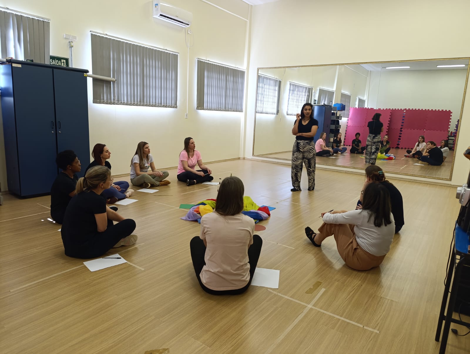 As atividades tiveram início na tarde do dia 22 de outubro, na sala de Dança do Ginásio de Esportes, com a oficina “Sinergia -Autocuidado e Autoconhecimento com a Dança: a beleza de Ser quem Eu Sou”, ministrada pela professora Mª. Laís Cavalheiro Rigo. Na ocasião, as participantes foram guiadas por vivências, em um espaço onde as Danças Circulares, a Biodança e a Dançaterapia se entrelaçaram em uma experiência de movimento livre, espontâneo e profundamente transformador.