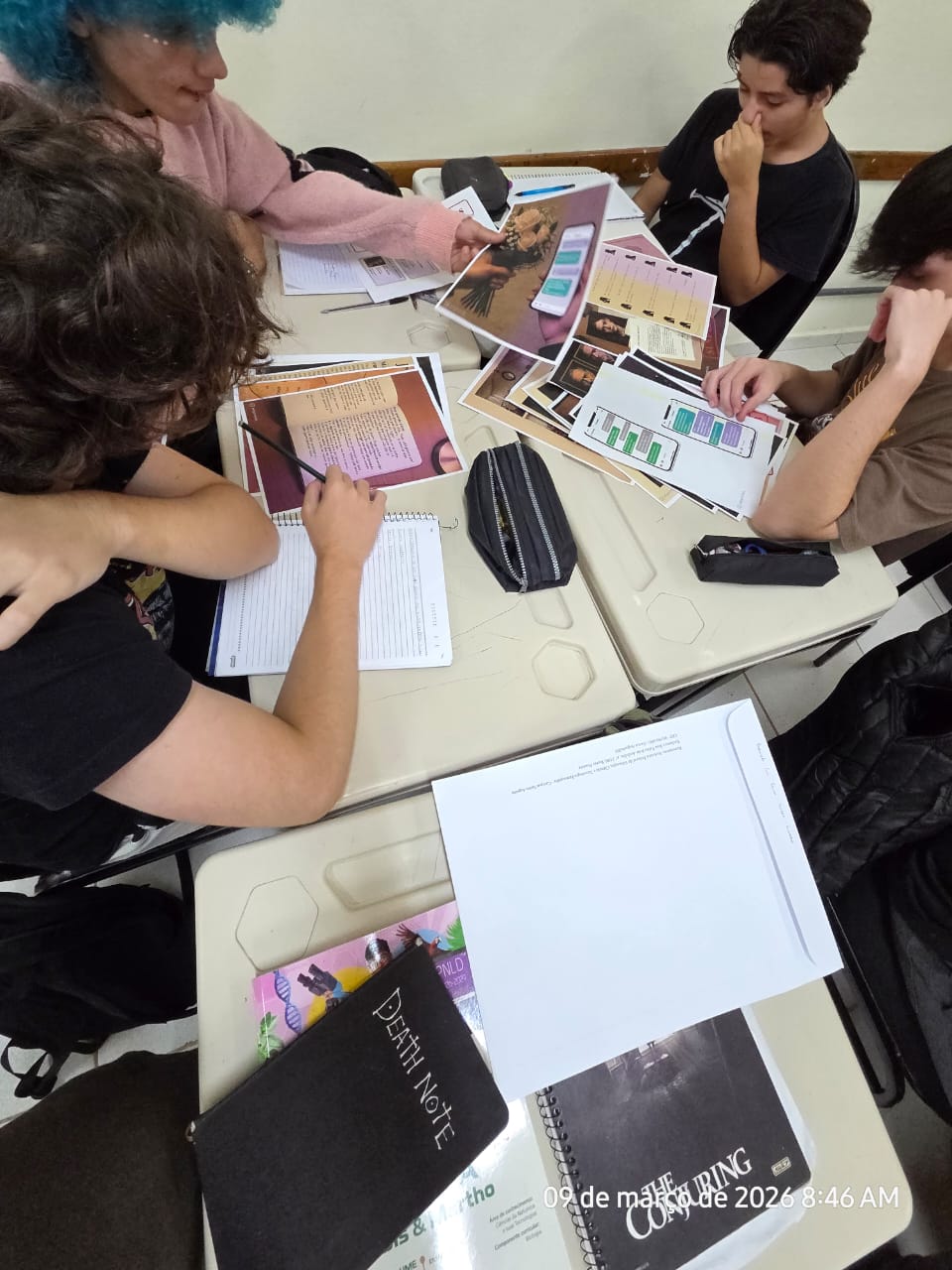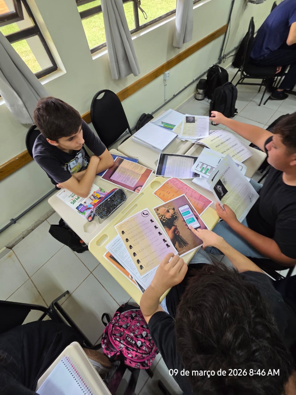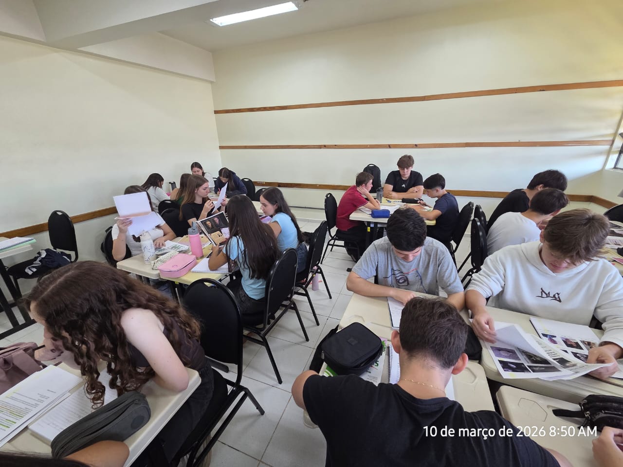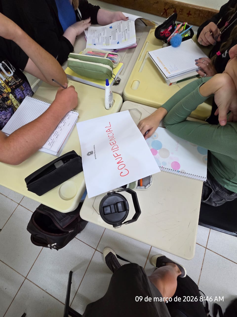 Os alunos do primeiro ano dos cursos técnicos em Administração e Informática realizaram uma atividade prática sobre Perícia Criminal na disciplina de Biologia, ministrada pela professora Camila Copetti, que transformou a sala de aula em um laboratório de investigação.