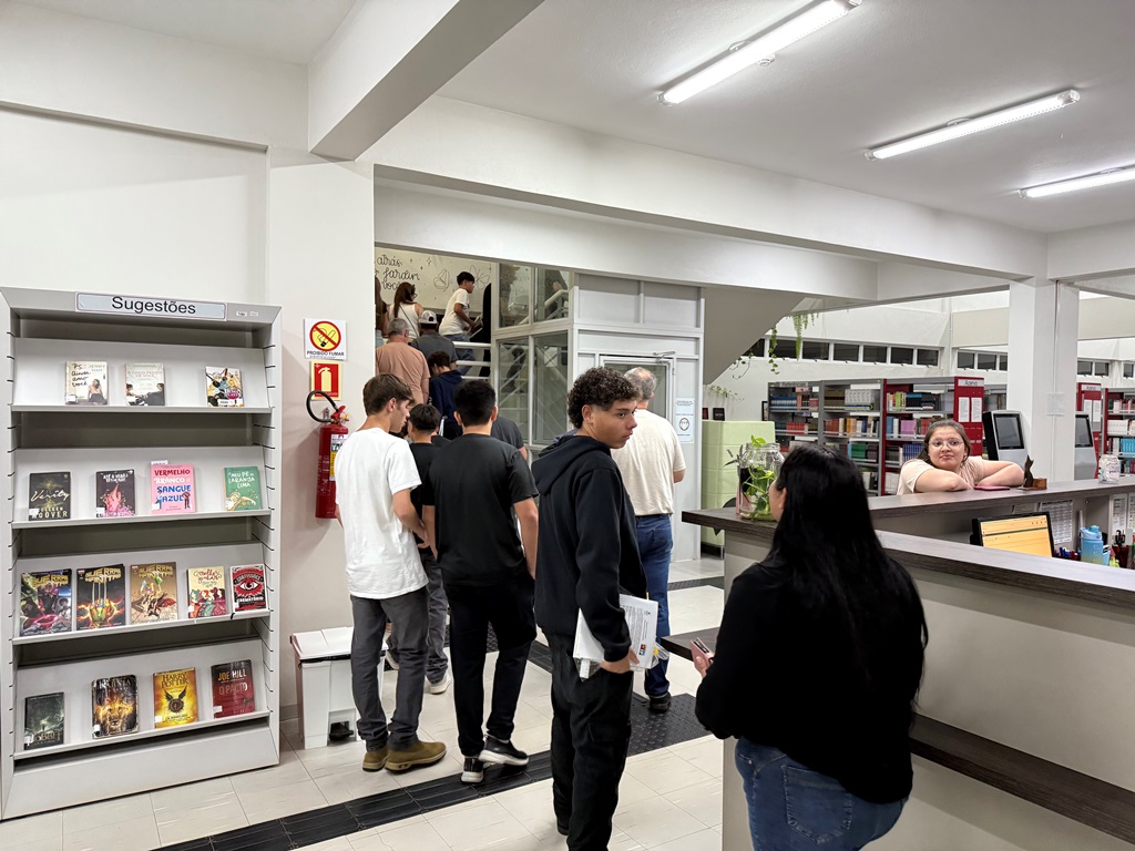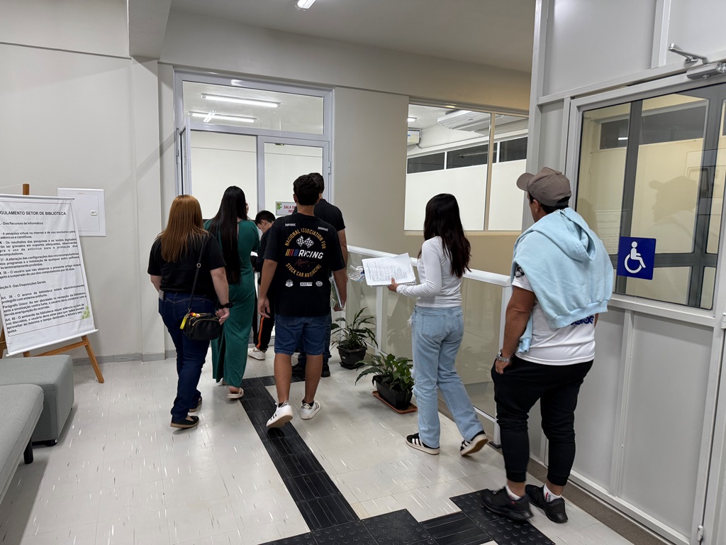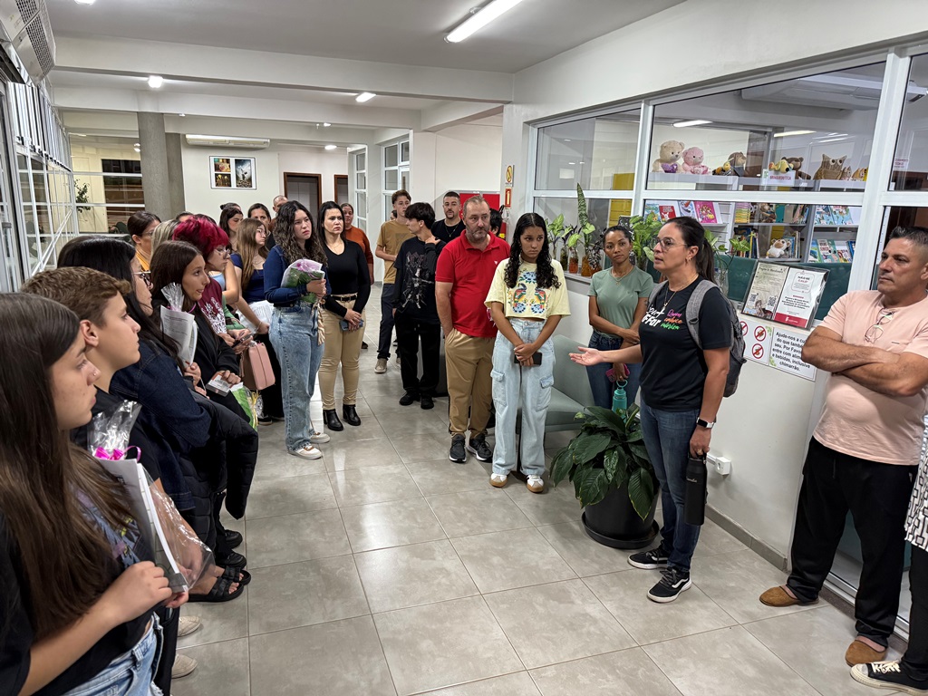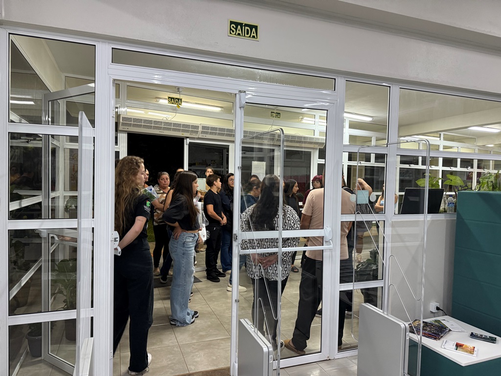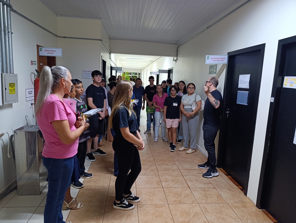 Após as apresentações no auditório, estudantes e familiares participaram de uma breve visita guiada pelo campus, conhecendo espaços como a Biblioteca Mario Quintana, a Assistência Estudantil, o Prédio de Laboratórios, o Ginásio de Esportes, o Refeitório e as salas de aula.