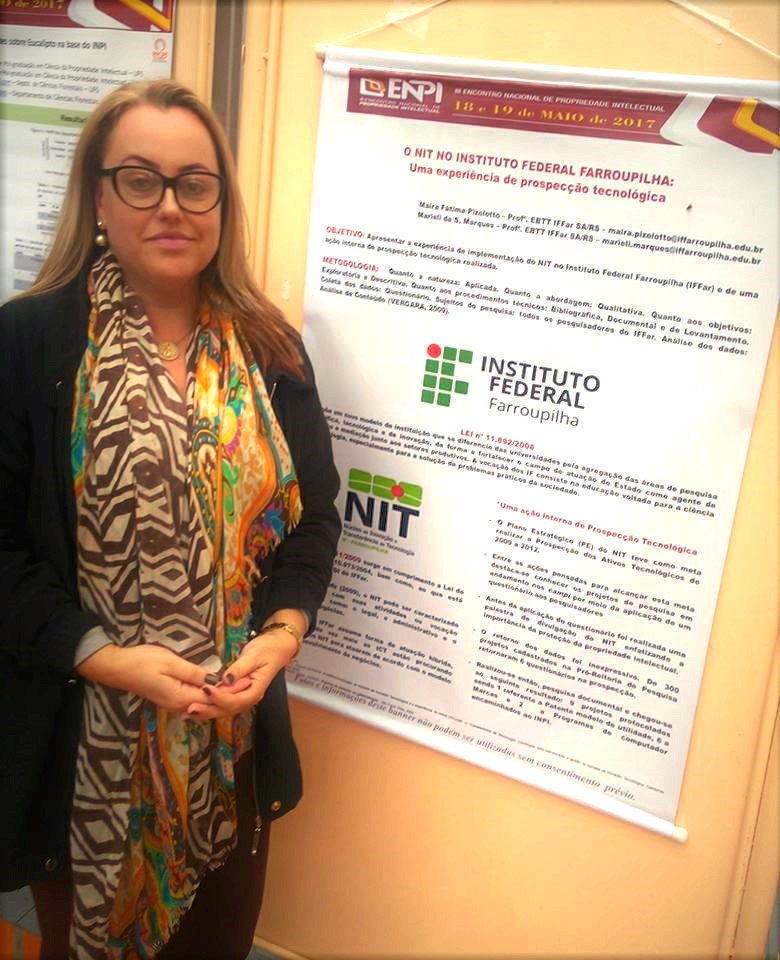 As professoras Maira e Marieli apresentaram dois artigos no Encontro: “O NIT no Instituto Federal Farroupilha: Uma experiência de prospecção tecnológica” (premiado na forma de pôster na sessão Prospecção Tecnológica) e “Implementação de uma cultura de Inovação: O caso do NIT do IFFar”.