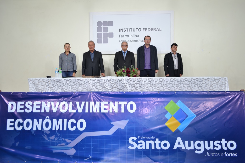 O evento, promovido pela prefeitura de Santo Augusto, fez parte das festividades dos 58 anos do município e contou com a presença da Diretora Geral do IFFar – Campus Santo Augusto, Verlaine Gerlach, do Secretário Estadual de Agricultura, Ernani Polo, do prefeito, Naldo Wiegert, do vice-prefeito Marcelo Both, do presidente da Câmara de Vereadores, Joel da Rosa, bem como autoridades e empresários da região