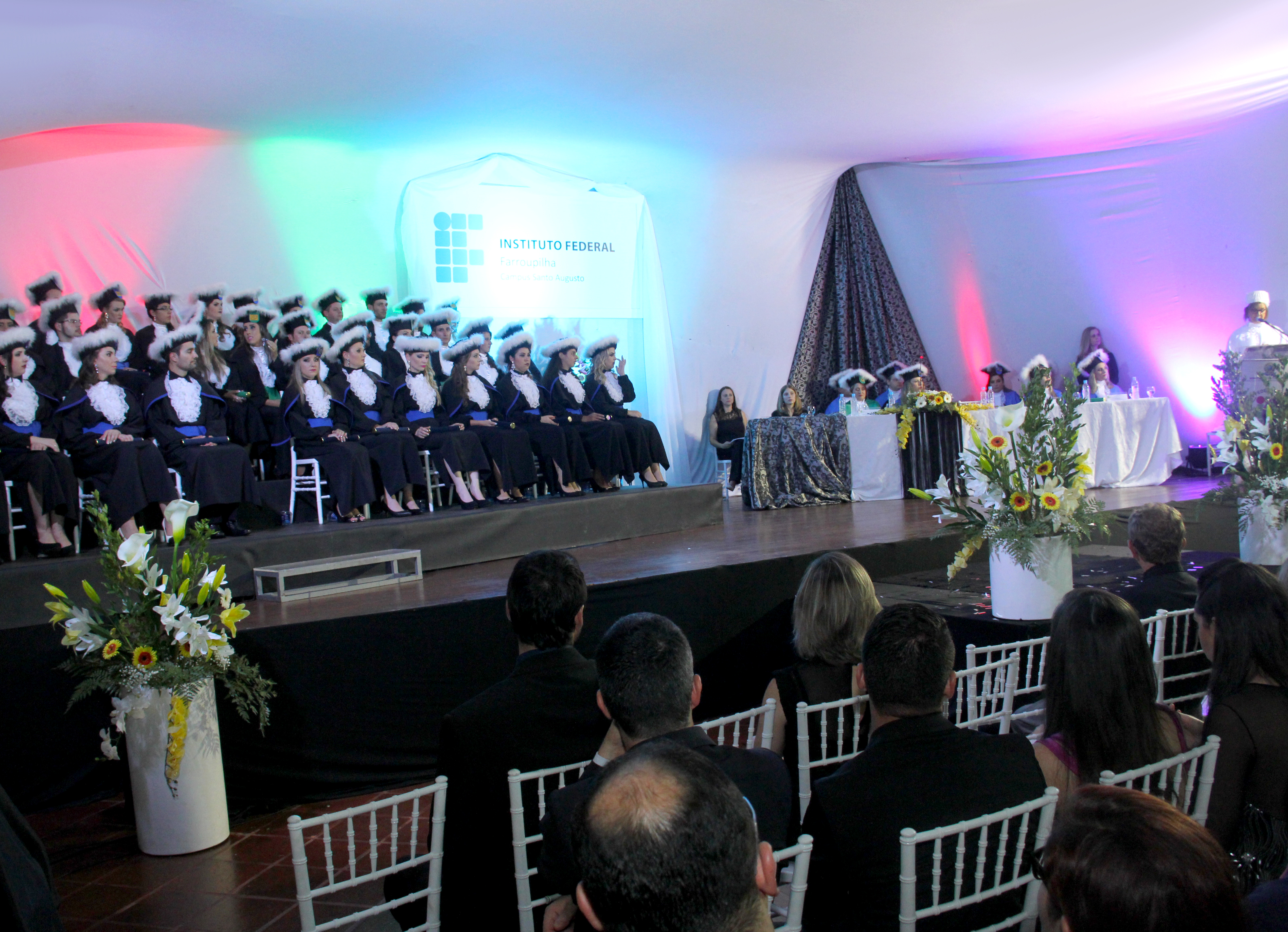 O Instituto Federal Farroupilha – Campus Santo Augusto, realizou no dia 15 de Abril, no CTG Pompílio Silva, a solenidade de Colação de Grau da 4ª Turma de formandos dos Cursos Superiores de Licenciatura em Computação, Tecnologia em Agronegócio e Tecnologia em Alimentos.