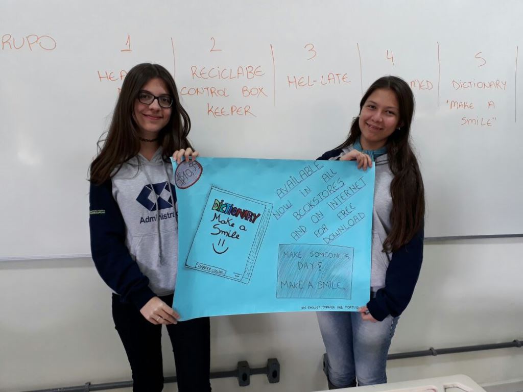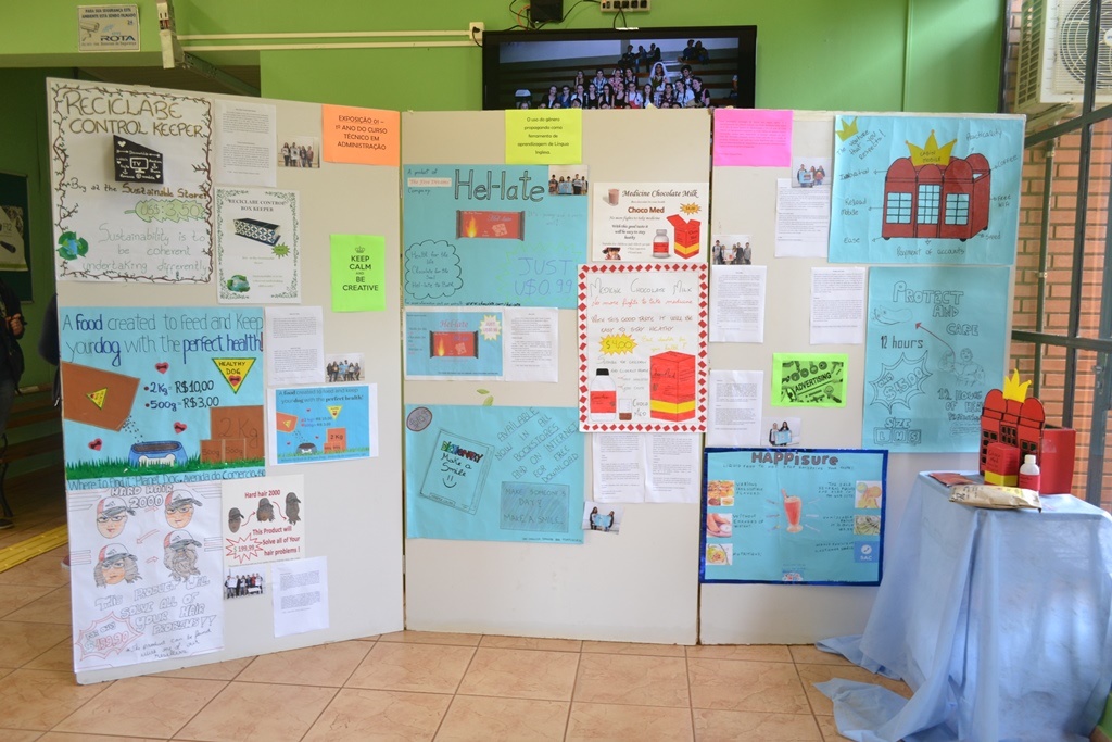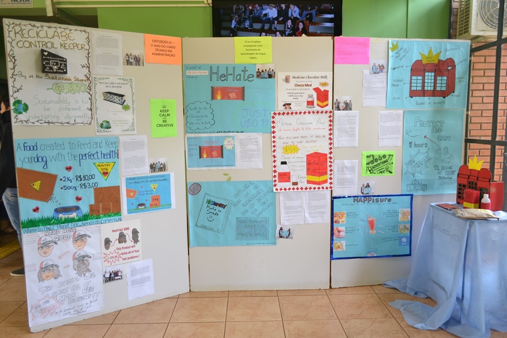 A professora explica que uma das atividades propostas dentro do conteúdo foi a criação de produtos inovadores, que pudessem trazer benefícios para a sociedade. “Os produtos deveriam ser integralmente apresentados utilizando Língua Inglesa, através do gênero propaganda, por meio de um cartaz, uma propaganda virtual e um "protótipo" do produto desenvolvido. As produções dos alunos, que foram positivamente surpreendentes e criativas, serão expostas semanalmente, tendo iniciado com a turma do 1º ano do curso técnico em Administração”.