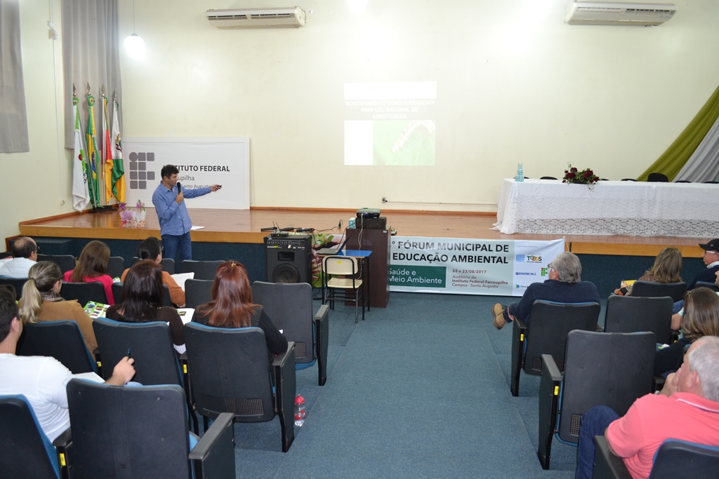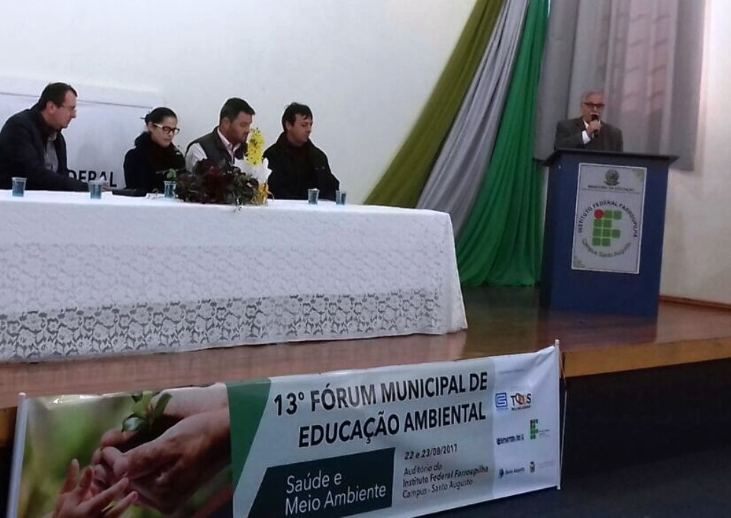 O IFFar - Campus Santo Augusto foi sede nos dias 22 e 23 de agosto do 13º Fórum Municipal de Educação Ambiental, com o tema “Saúde e Meio Ambiente”. O evento foi organizado por uma comissão constituída pelo IFFar - Campus Santo Augusto, Emater/RS-ASCAR, Corsan e Prefeitura Municipal de Santo Augusto, através das Secretarias de Educação e Cultura – SMEC, Agricultura –SEDAGRO e Meio Ambiente, teve 150 participantes inscritos.