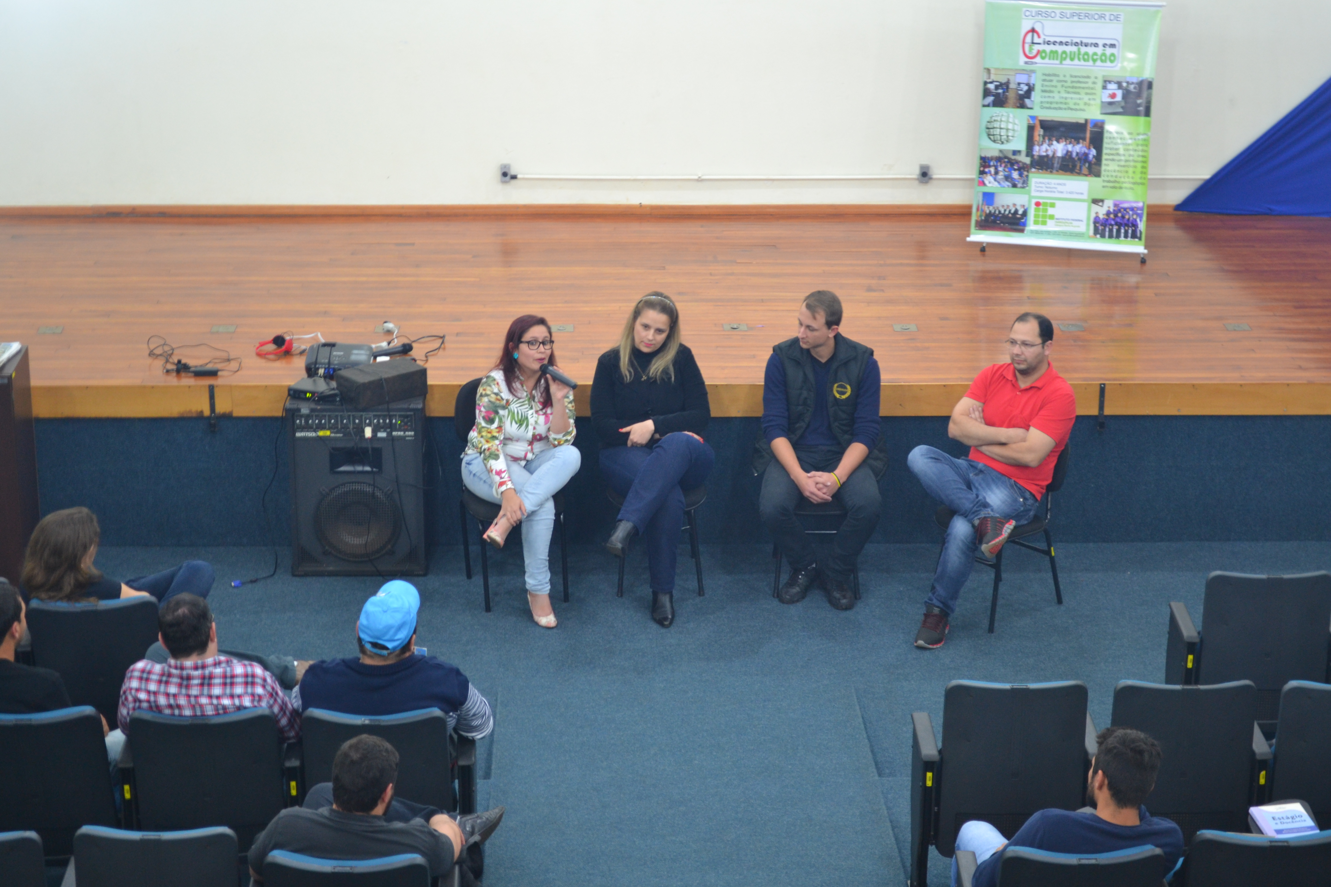 O evento teve início na segunda-feira, dia 28, às 19h, com a abertura oficial, seguida pela palestra “Navegando pelos mares da vida”, ministrada pela professora Drª. Inaiara Rosa de Oliveira e na sequência a mesa redonda com os egressos da Licenciatura em Computação, Paola Ponciano Braga, Lilian Baugratz de Oliveira, Cleiton José Richter e João Aloisio Wink.
