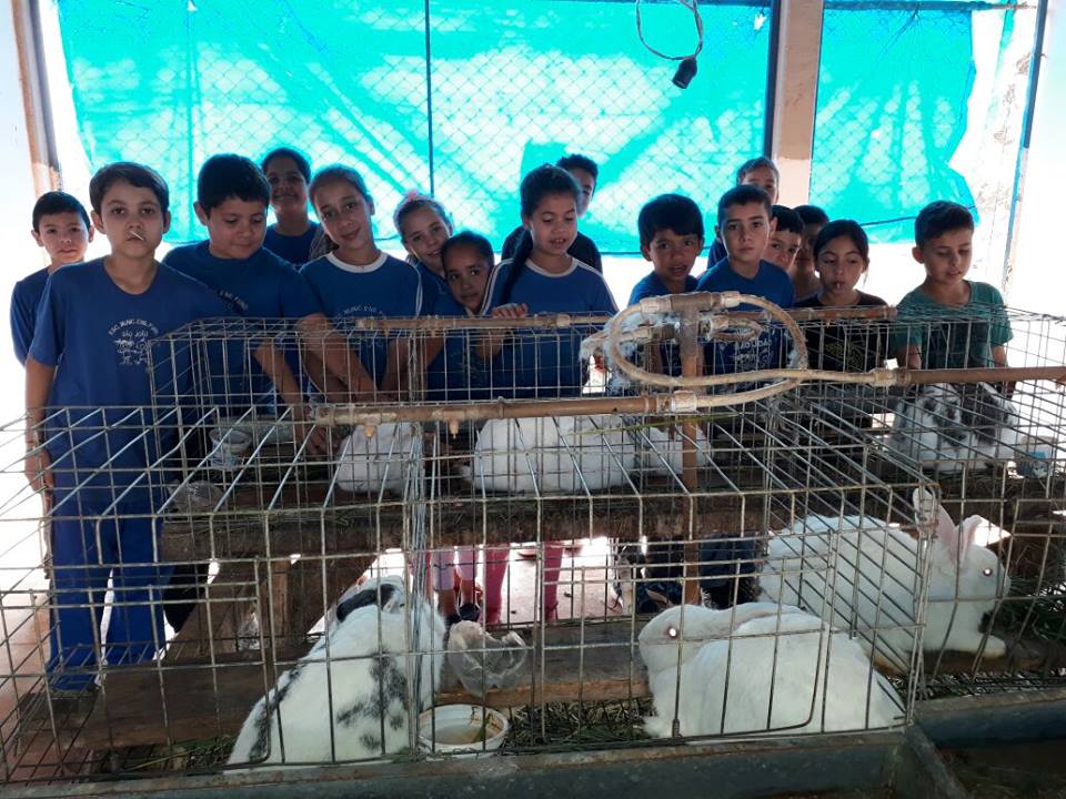 Depois da visita ao laboratório, as crianças conheceram as áreas de suinocultura, ovinocultura, aves e bovinos, onde puderam ver os animais e praticar seus nomes em espanhol e inglês.
