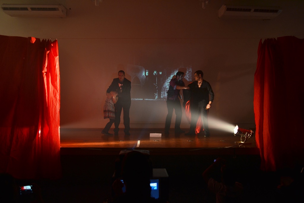 Os estudantes foram divididos em tarefas para a produção da peça. Stéphane destaca que foram dois intensos meses de ensaio. “A professora de artes, Téoura Benetti, entrou com a turma do 3°ano no projeto e, juntos, ensaiamos o texto com cenário digital, música, figurino, e depois, com trechos do filme, de modo a gerar a ambientação necessária a uma história do final do século XIX”.