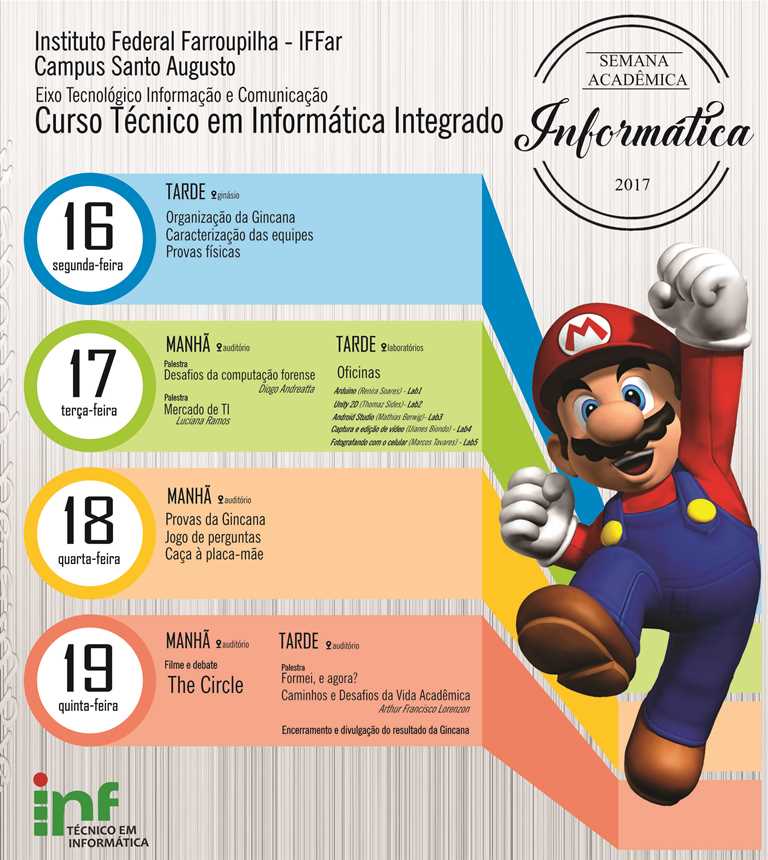 O IFFar-Campus Santo Augusto realizou de 17 a 19 de outubro a Semana Acadêmica do curso técnico em Informática.