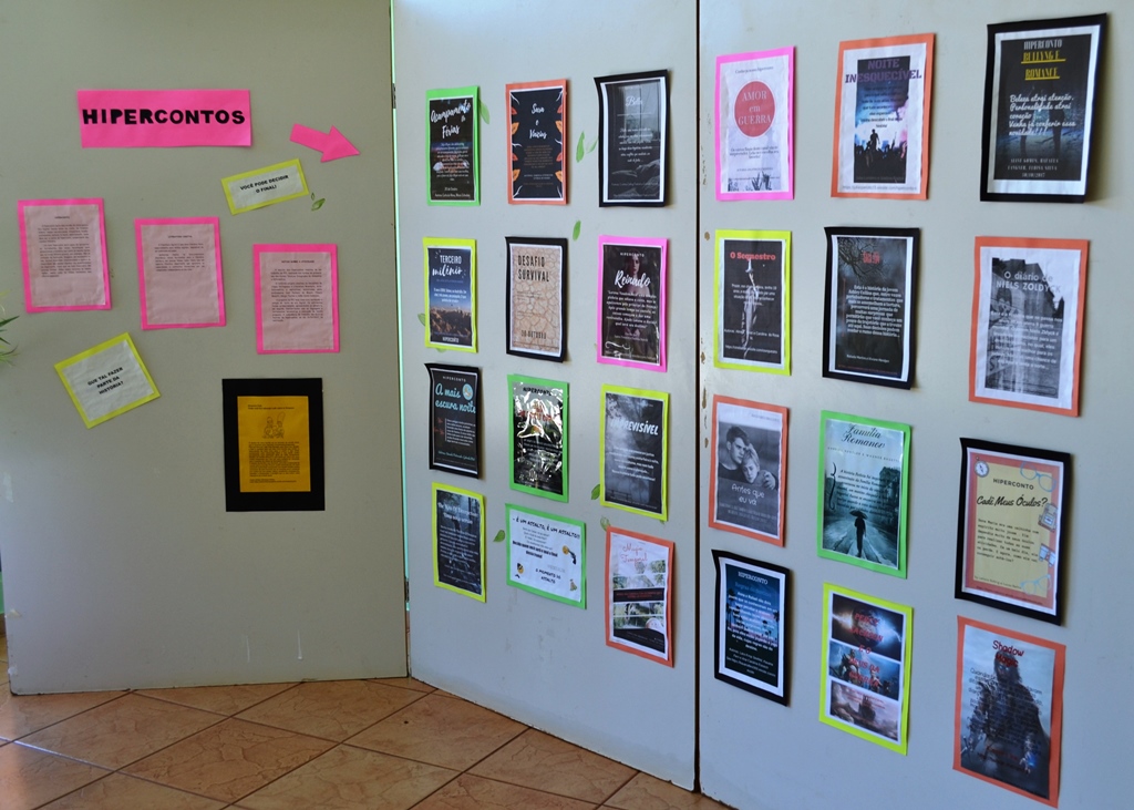 O texto na era digital foi o eixo norteador desta atividade pedagógica, em que os alunos de primeiro anos dos Cursos Técnicos Integrados ao ensino médio de Alimentos e Informática foram desafiados a criar hipercontos. O trabalho interdisciplinar ocorreu com o diálogo entre as disciplinas de Língua Portuguesa e Literatura Brasileira, Arte, Informática e Aplicativos, desenvolvida pelos professores, Soni Pacheco de Moura, Téoura Benetti, Adao Cambraia e Serginho Tiecher.