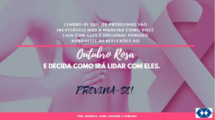 Segundo a professora responsável pela disciplina, Simone Beatriz Nunes Ceretta, sempre são feitas atividades que envolvam alguma forma de divulgação de um produto, mas este ano, aproveitando o Outubro Rosa, foi proposto aos alunos, desenvolver postagens e ou vídeos via Facebook para apoiar a causa. “O resultado foi positivo e fez os alunos, primeiramente, refletir sobre o câncer de mama, que atinge todas as idades, e a importância do diagnóstico precoce”.