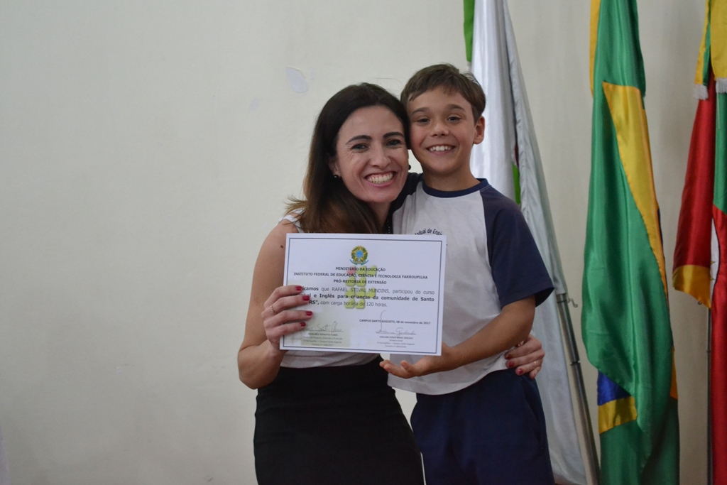 O IFFar – Campus Santo Augusto realizou na quinta-feira, dia 16 de novembro, às 14h, no auditório da instituição, a solenidade de certificação do Projeto de Extensão “Espanhol e Inglês para crianças da comunidade de Santo Augusto”.