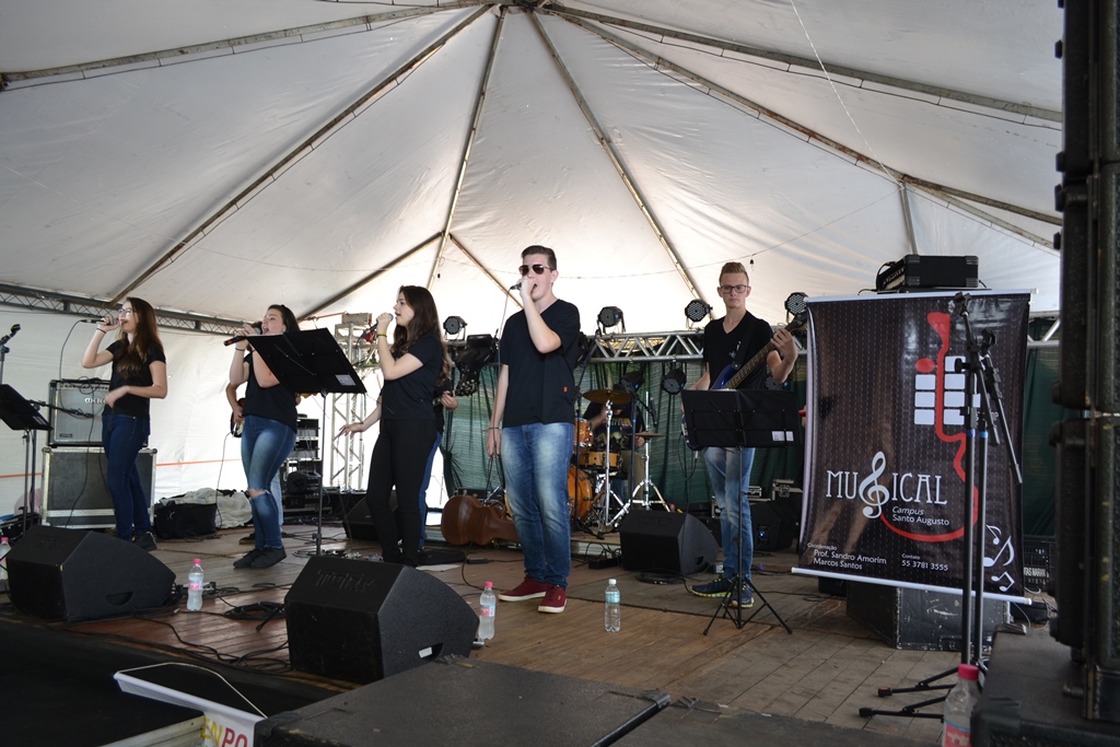 Na oportunidade o Professor Sandro, falou sobre o projeto e também sobre o IFFar - Campus Santo Augusto, deixando um convite para que a comunidade buscasse mais informações sobre cursos e formas de ingresso, acessando o site da instituição. Segundo o professor Sandro, a apresentação foi muito legal e teve boa receptividade por parte do público presente na feira na tarde de sábado. “As pessoas interagiram com a banda e aplaudiram bastante, foi bem empolgante”.