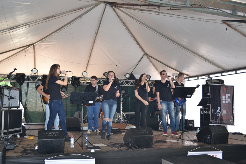 Marcos Wollamann explica que a apresentação apesar de rápida, pois a Banda teve apenas uma hora para entrar no palco passar o som e se apresentar, foi bem legal. “Nos apresentamos no palco 2, que ficava junto a praça de alimentação da feira, havia no local cerca de 300 pessoas lanchando, descansando e curtindo o IF Musical. Havia também pais de alunos integrantes da Banda, que nos auxiliaram o ano todo e nesta última apresentação do ano não poderia ser diferente, levaram seus filhos e acompanharam o show.