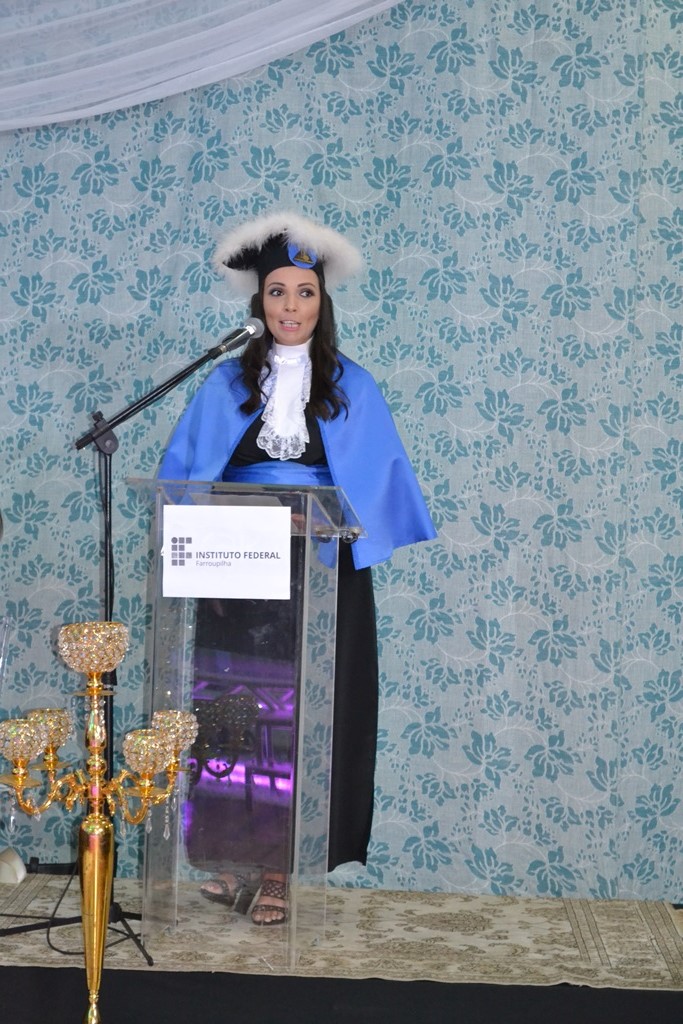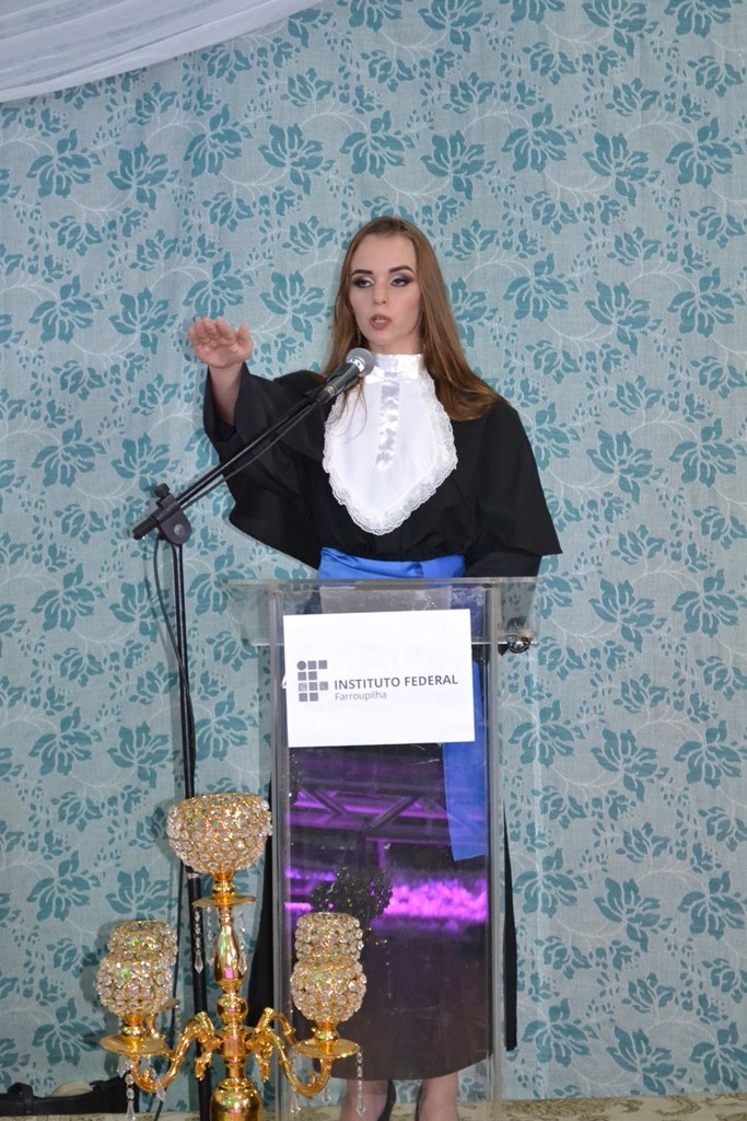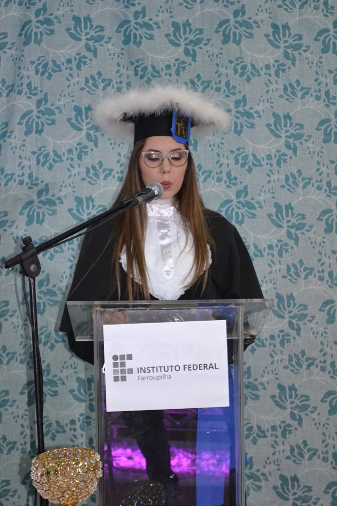 Em sua fala, a diretora Verlaine agradeceu aos pais dos concluintes por terem confiado a educação profissional de seus filhos ao IFFar - Campus Santo Augusto e destacou as conquistas e avanços alcançados nos 10 anos da instituição, dentre elas os bacharelados em Administração e Agronomia que terão o ingresso das primeiras turmas em fevereiro de 2018.