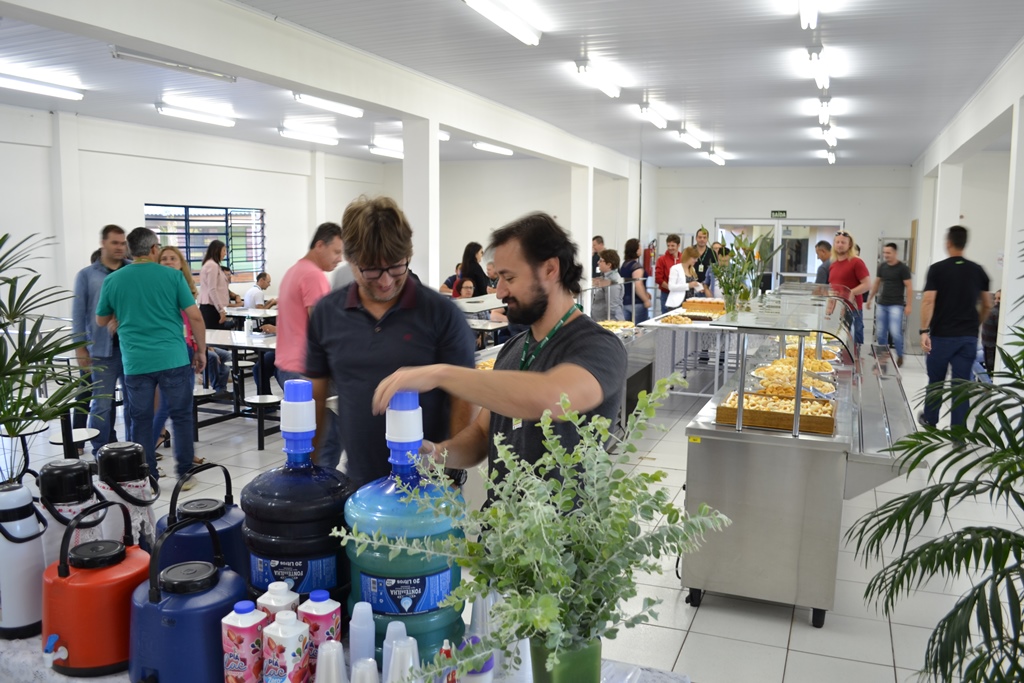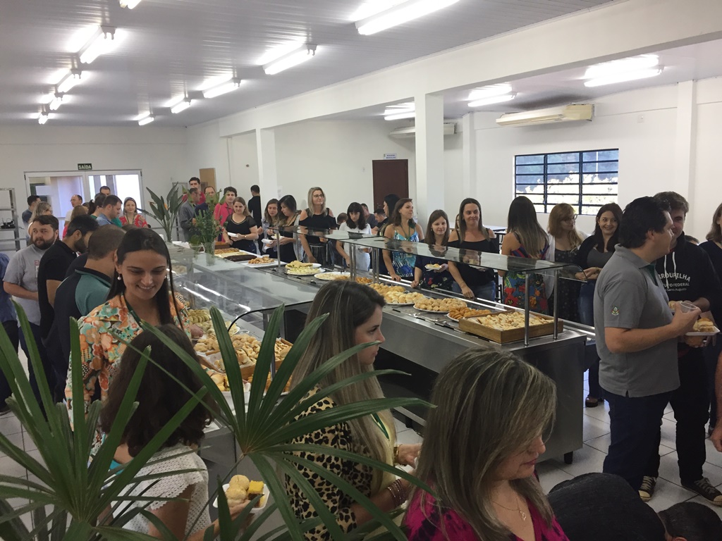 O IFFar – Campus Santo Augusto deu início as atividades letivas 2018 na manhã de ontem, dia 15 de fevereiro. Na ocasião, os servidores foram recebidos no refeitório para café de boas vindas. Na chegada todos receberam da equipe diretiva um squeeze personalizado e a agenda 2018. Após o café, os servidores ligados ao ensino participaram de uma reunião pedagógica no auditório, coordenada pela Direção de Ensino, onde foram repassadas orientações sobre o primeiro semestre letivo.