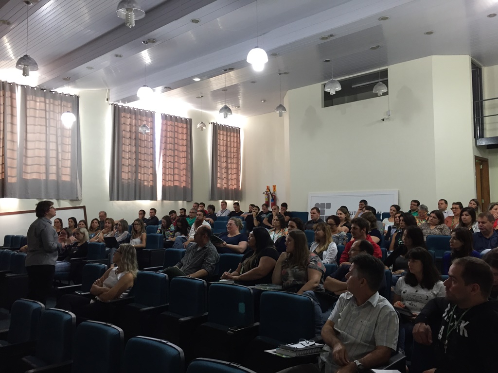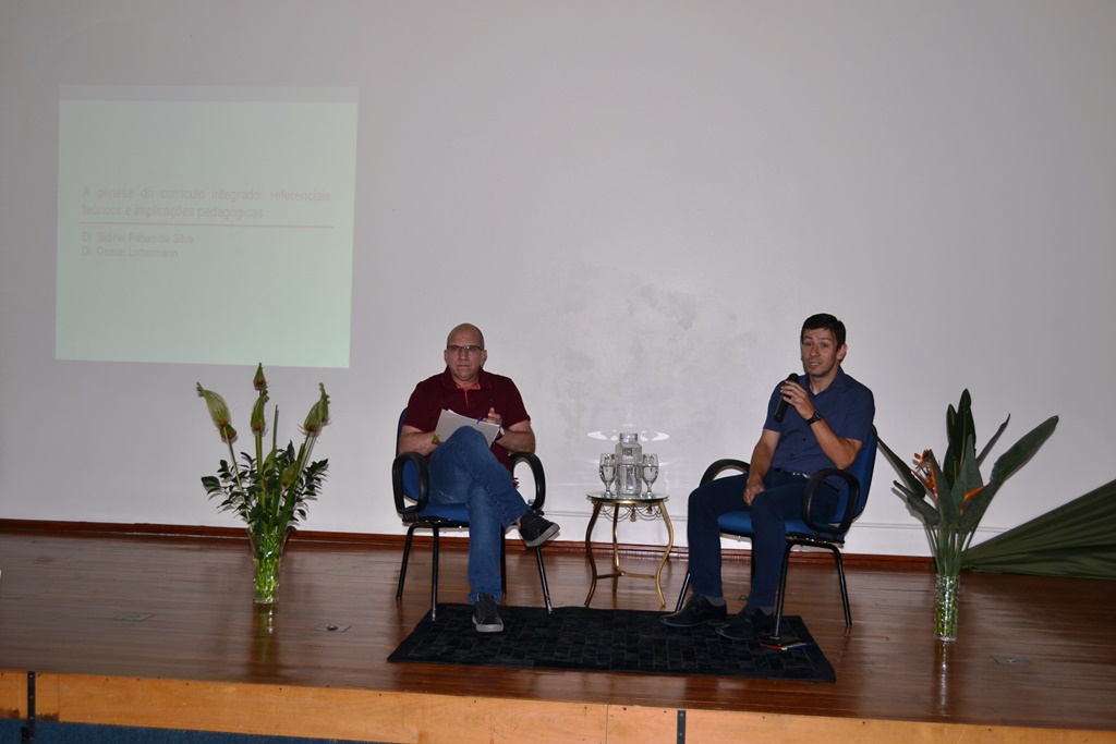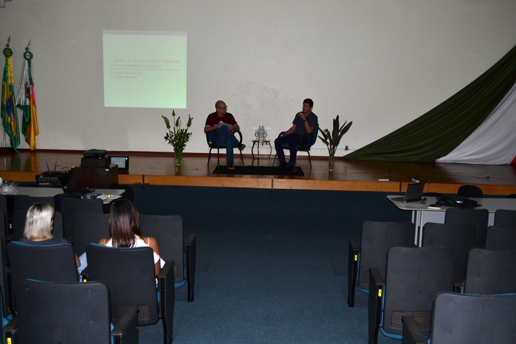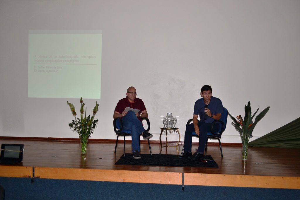 A programação continuou à tarde, com uma atividade de formação continuada destinada à todos os servidores, que teve como palestrantes os professores doutores Osmar Lottermann e Sidinei Pithan da Silva, os quais falaram sobre “A gênese do Currículo Integrado: referenciais teóricos e implicações pedagógicas”. O debate foi mediado pela comissão de formação continuada.