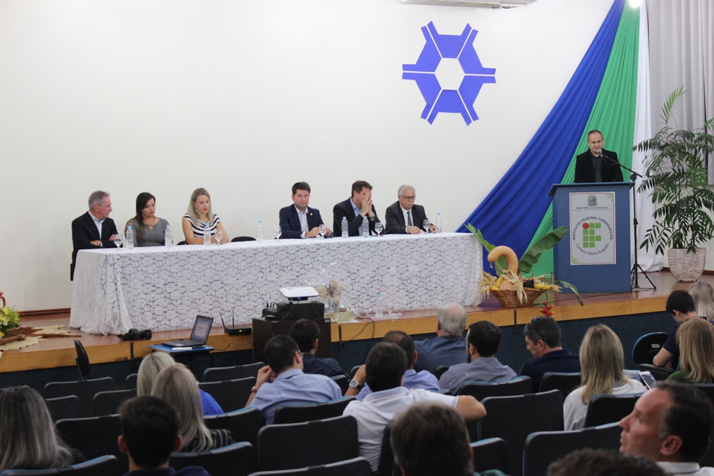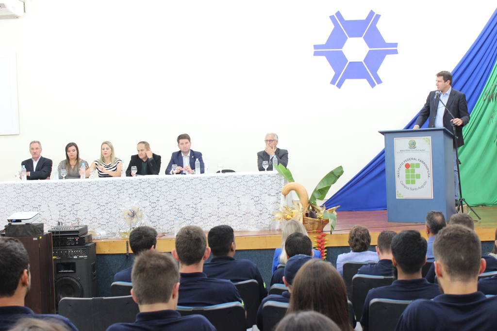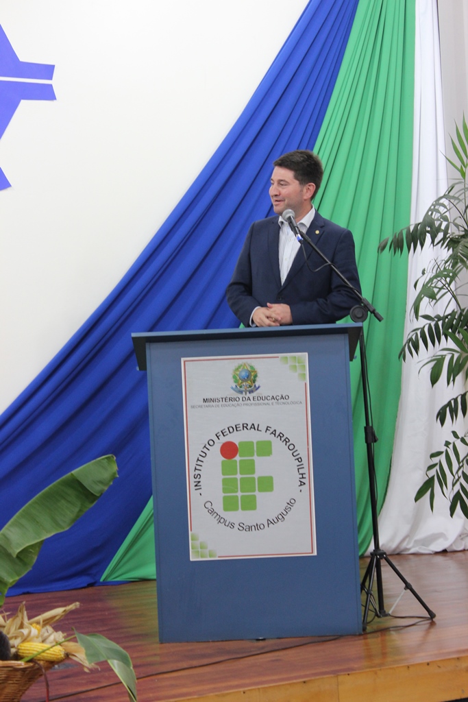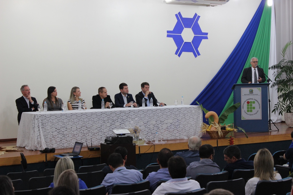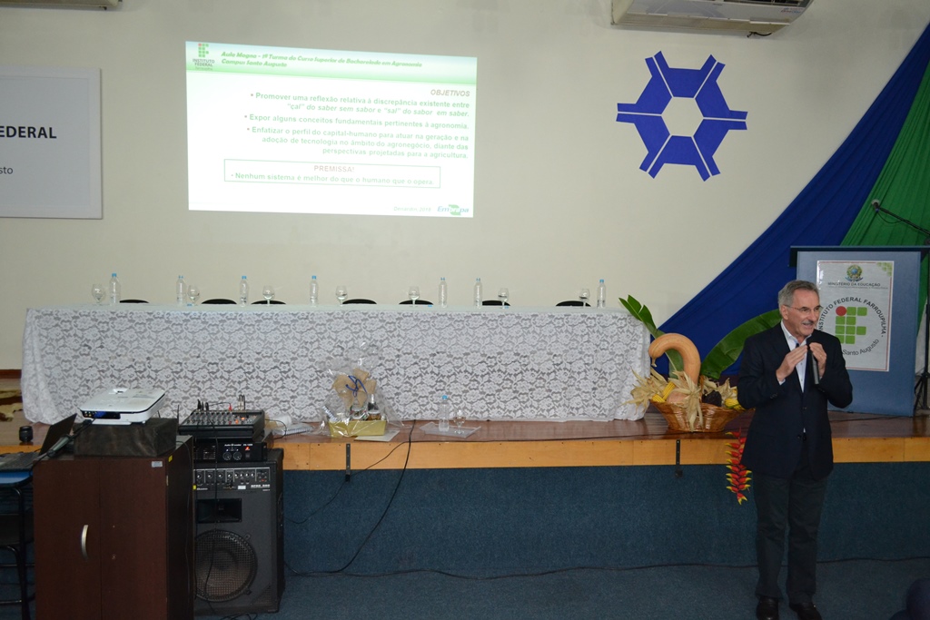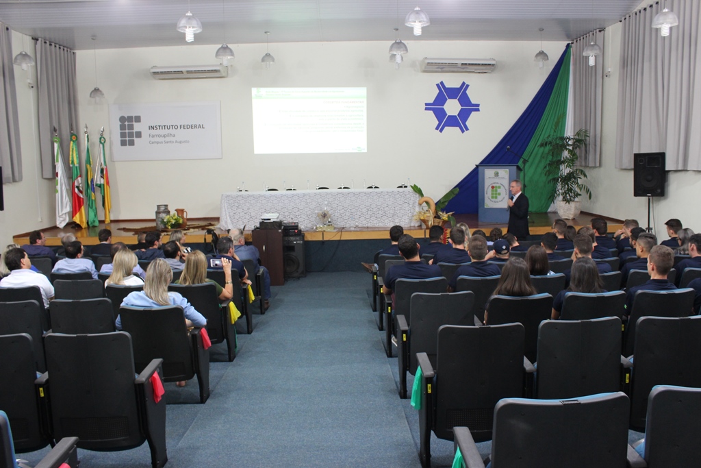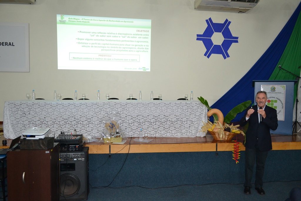 O IFFar – Campus Santo Augusto realizou na noite de ontem, dia 19 de abril, a Aula Magna da 1ª turma do curso superior de Bacharelado em Agronomia, ministrada pelo Dr. José Eloir Denardin, com o tema “O papel do agrônomo na diversidade de ações requeridas pelo agronegócio”.