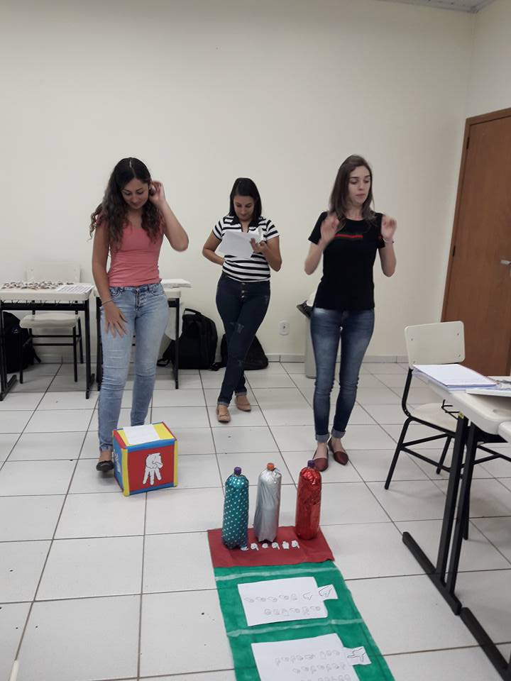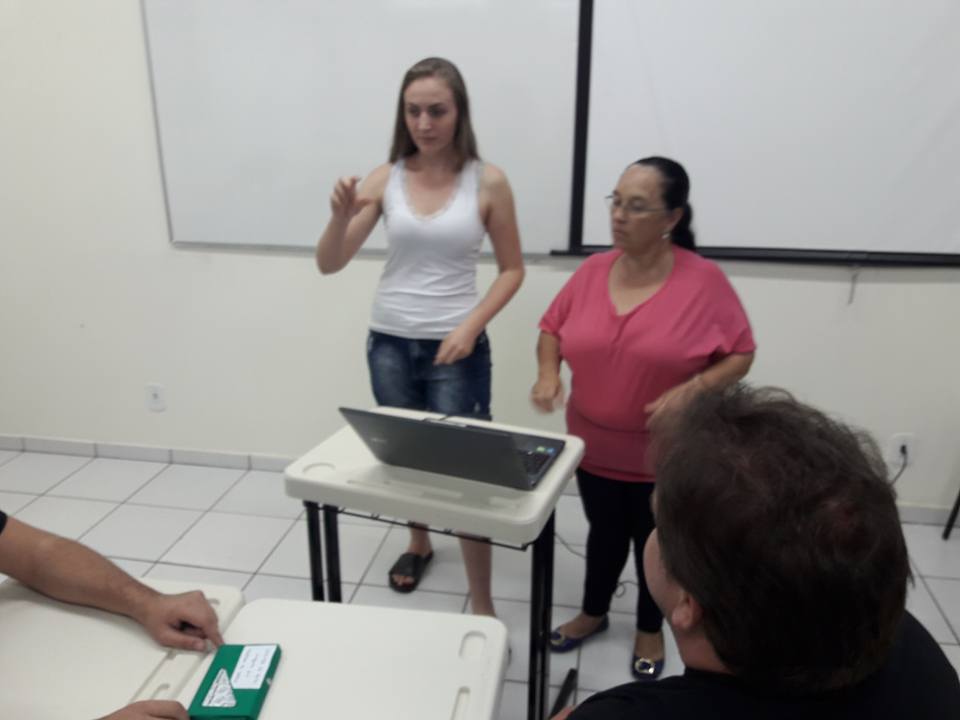 Segundo a professora, os estudantes do 7º semestre do curso, tinham como objetivo, dentro da atividade proposta, desenvolver um jogo para o ensino de Libras, onde todas as regras/instruções deveriam ser expostas aos demais colegas na língua usual dos surdos do nosso país.