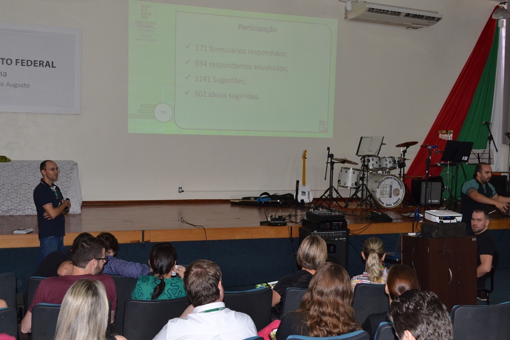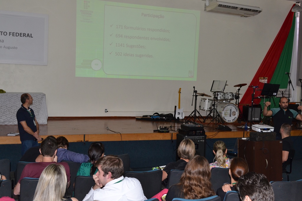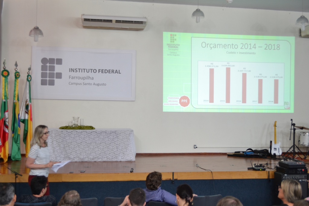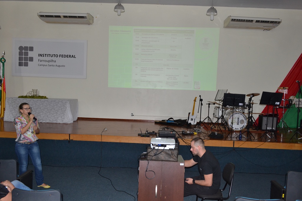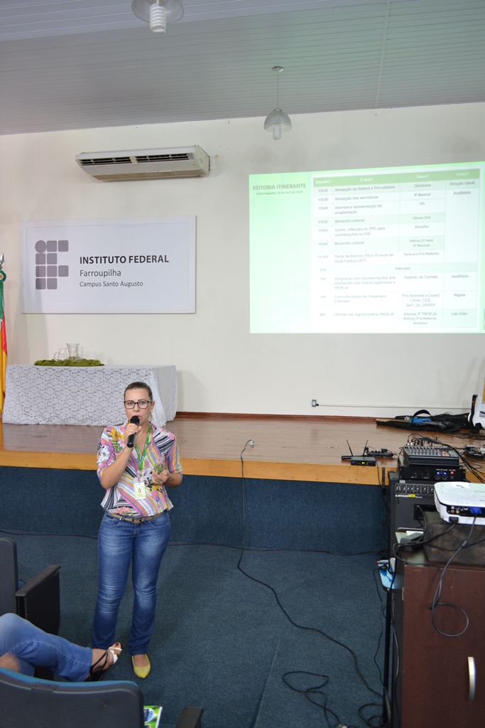 A Reitora Carla, explicou que o IFFar está em processo de construção de um novo PDI, o qual irá valer para o período de 2019 a 2026. “Desde o ano passado vigora no país uma emenda constitucional, que congelou o orçamento público por 20 anos, mas mesmo com a redução dos valores recebidos o Campus Santo Augusto demonstra que tem se reinventado para driblar a falta de recursos financeiros. O que foi mostrado aqui hoje é a excelência do que os Institutos Federais fazem e o PDI tem que garantir isso. Tenho muito orgulho de verificar que tudo aquilo que a instituição estabelece como objetivo acontece no Campus Santo Augusto” destaca a Reitora.