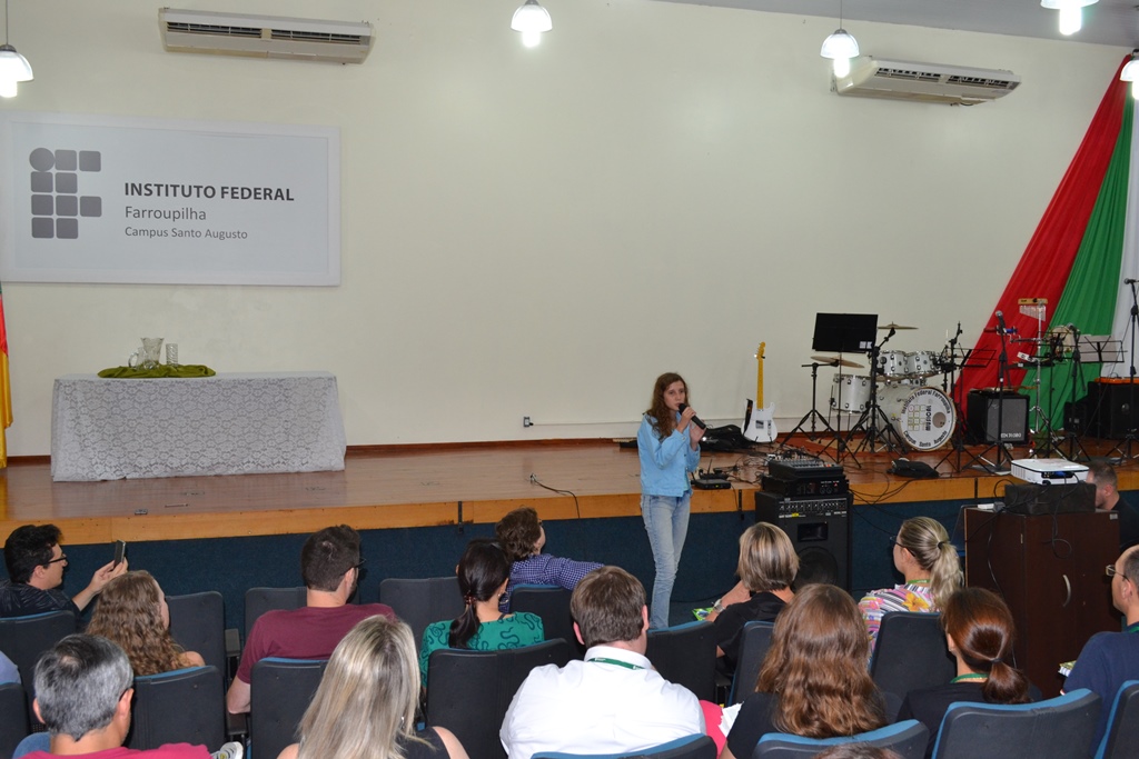 Antes da fala da Reitora, sobre o PDI e os 10 anos da Rede Federal, houve um segundo momento cultural, a cargo da aluna do 2º ano do curso técnico em Informática, Vitória Ribeiro, a qual cantou à capela a música “O bêbado e o equilibrista”, sendo aplaudida em pé por todos os presentes.