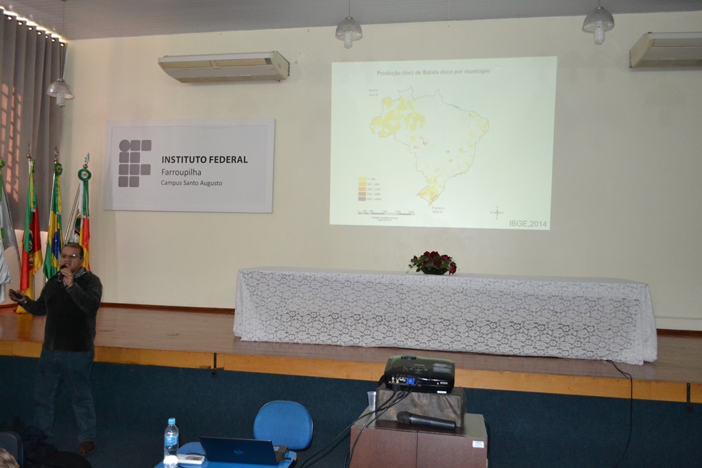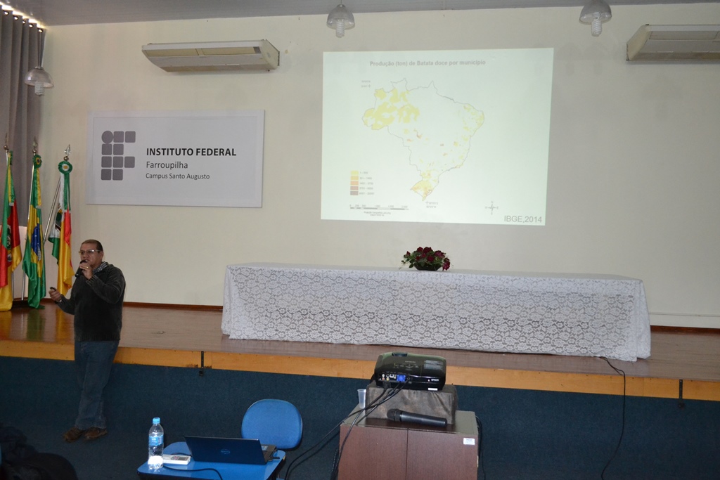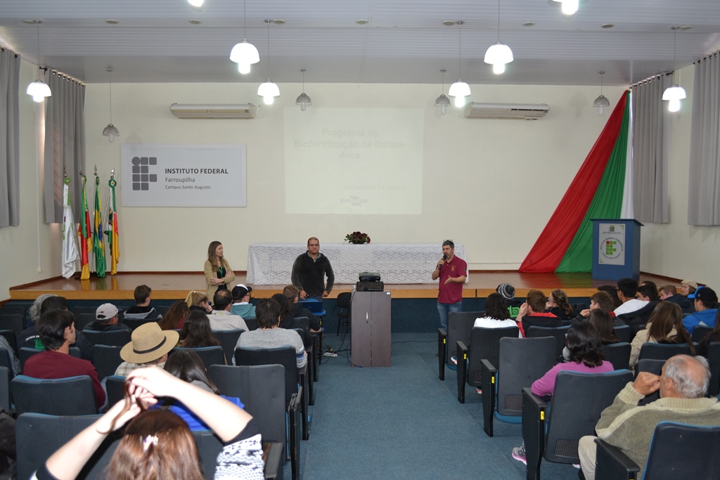 O IFFar – Campus Santo Augusto realizou na quinta-feira, dia 24 de maio, a  Tarde de Campo Batata-doce biofortificada, com a presença do pesquisador da Embrapa Hortaliças de Brasília – DF, Alexandre F. S. Melo.