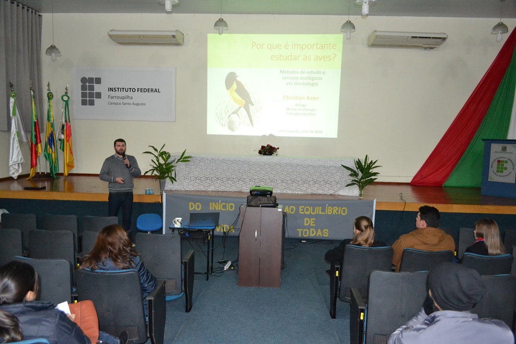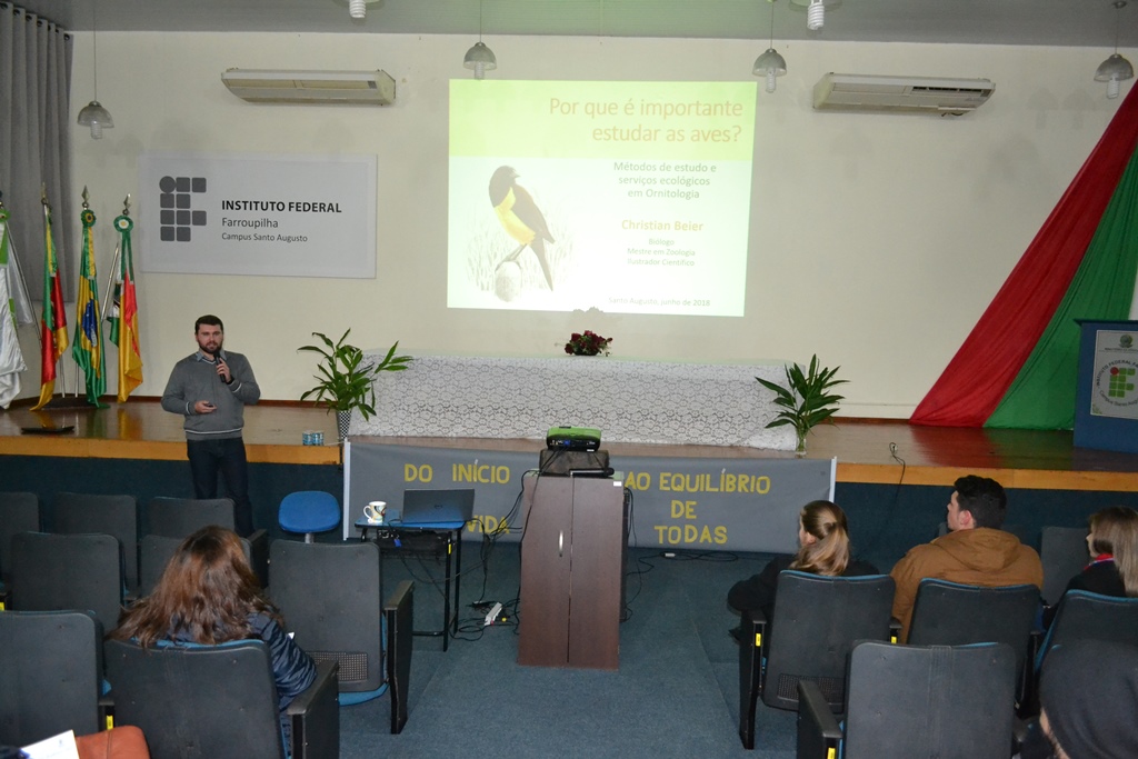 O evento iniciou na terça-feira, dia 05 com as palestras “Por que é importante estudar as aves?” com o Biólogo Ms. Chritian Beier, seguida pela palestra sobre "Impactos Ambientais" com o professor Ms. Fernando Pasini. Nos dias 06 e 07 aconteceram oficinas e no dia 08 foi realizado o encerramento do evento com a exibição do filme “A vida continua”, que teve o debate mediado pelas professoras Sthéphane Dias e Inaiara Oliveira.