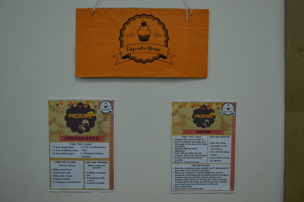 Além de criar uma confeitaria com um slogan exclusivo e um cupcake especial, os alunos elaboram a apresentação da receita e modo de preparo, bem como, a propaganda do cupcake em língua inglesa e um cenário físico para a exposição. A turma foi dividida em oito equipes, que tiveram ao todo 2h30 para a execução das receitas e preparação do cenário.