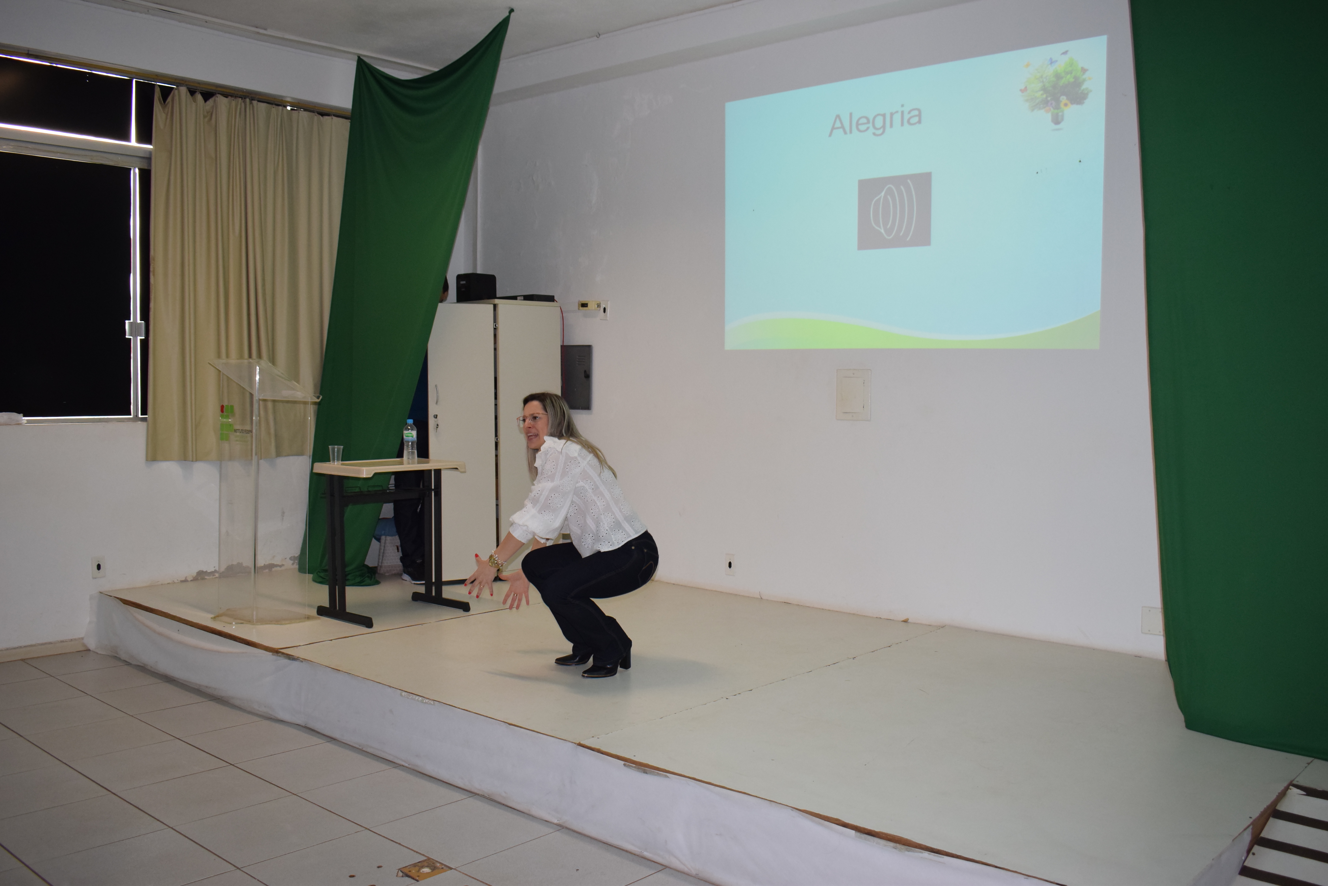 Aline abordou com os alunos os temas medo, insegurança e ansiedade. Explicou como se desvencilhar e lutar contra, focando na solução e não no problema. Ela também falou que o enfrentamento dos problemas, pode gerar a solução dos mesmos e que não se deve evitá-los, pois para ficar mais forte, é preciso infrentá-los.