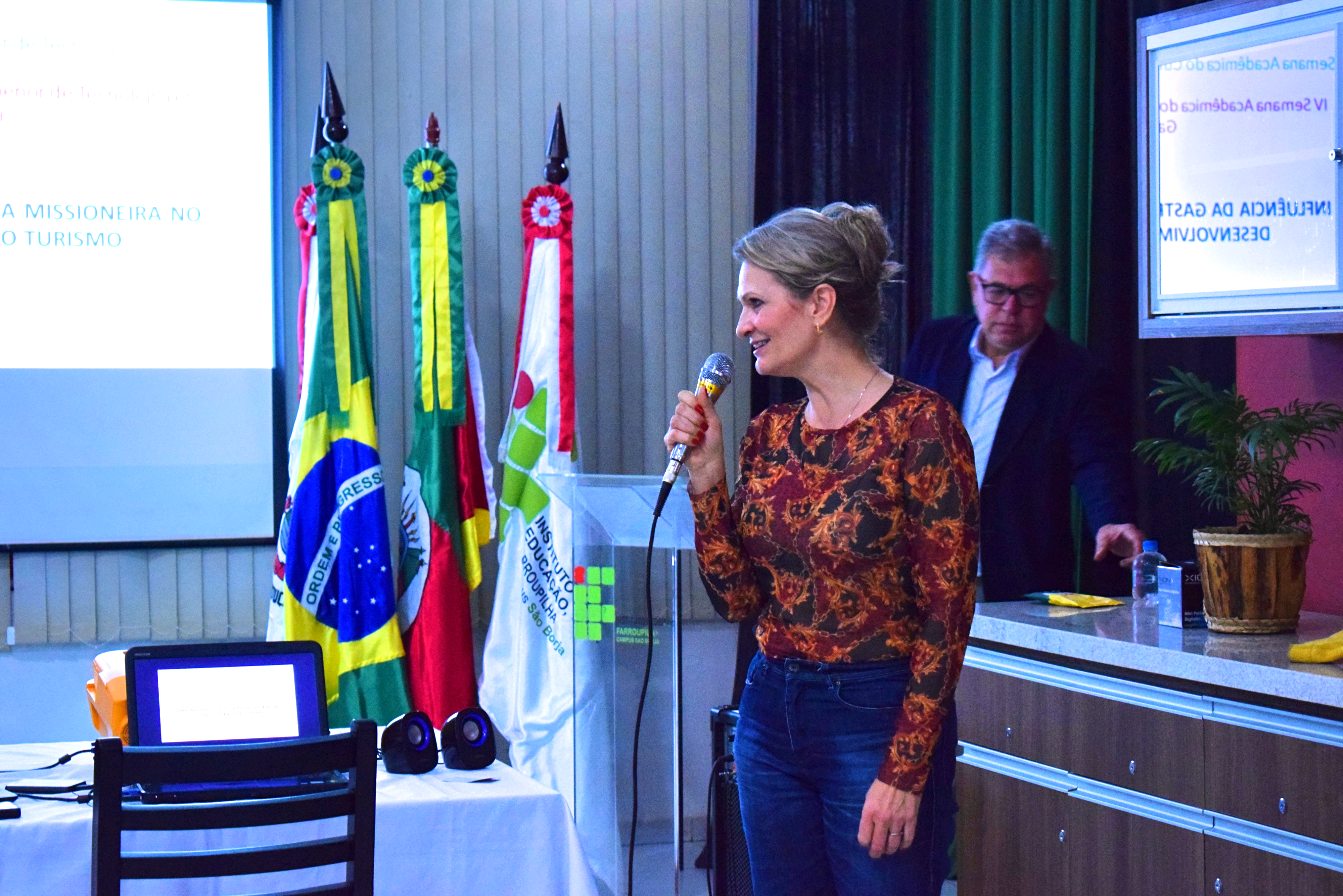 Na sua fala, a palestrante abordou a Influência da Gastronomia Missioneira no desenvolvimento do turismo, destacando cinco grandes áreas de abrangência, sendo a economia e o meio ambiente, na produção agrícola/pecuária; a educação e serviços, na formação técnica e profissional; a cultura na história, crenças, símbolos e valores no respeito as diferenças; a tecnologia, na comunicação e, por fim, as politicas sociais, para o bem-estar do público em interações humanas (migrações).