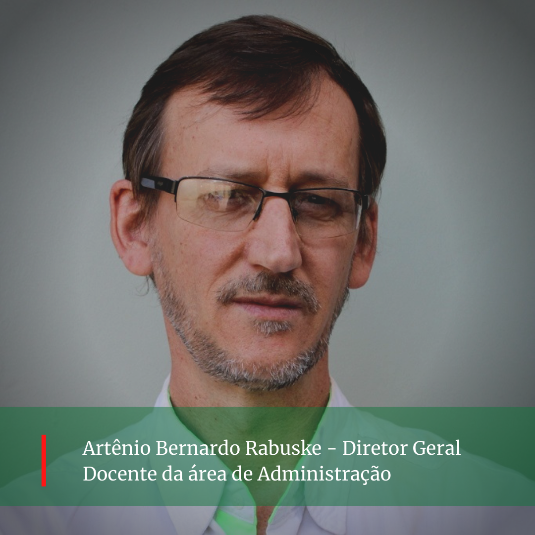 O Professor Artênio Bernardo Rabuske é natural de São Borja e está atualmente com 53 anos. Ingressou no IFFar São Borja em 2014 como professor substituto e depois tomou posse como professor efetivo, na área de Administração. Foi professor da Universidade da Região da Campanha (URCAMP) onde lecionou disciplinas em diferentes cursos de graduação e especialização. Na Urcamp foi coordenador do curso de Administração e Pró-Reitor do campus São Borja/Itaqui.