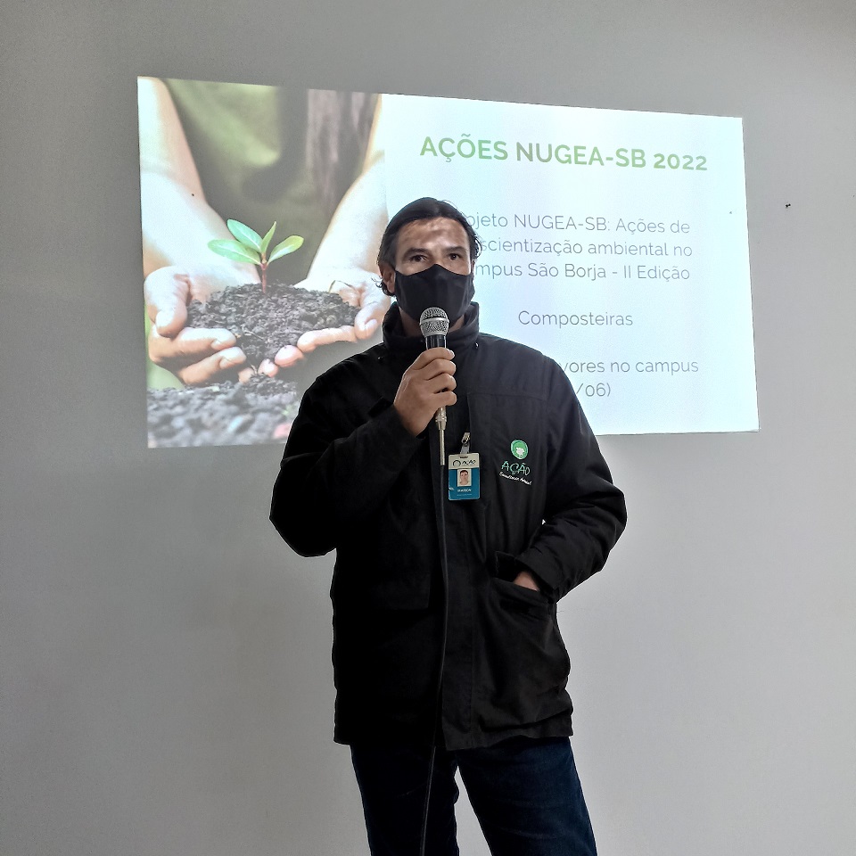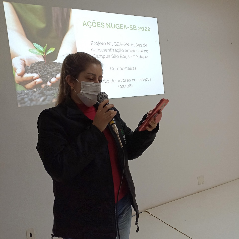 Na oportunidade, a docente de biologia e presidente do NUGEA, Denise Palma, abriu os trabalhos falando sobre o Núcleo de Educação e Gestão Ambiental (NUGEA), criado em 2020 ainda durante o período de atividades remotas. Foram abordados os motivos da criação do núcleo, suas finalidades e objetivos, membros e membras constituintes, além de uma fala explicativa sobre o Dia Mundial do Meio Ambiente.
