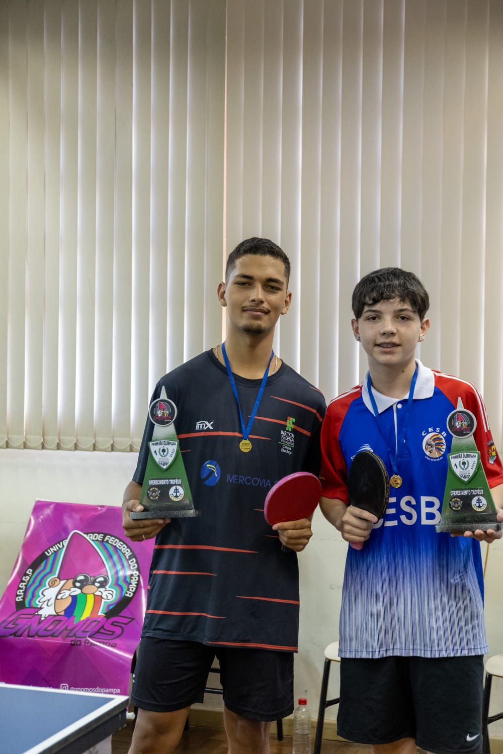 O aluno Gabriel Pinheiro foi o grande destaque no tênis de mesa masculino, conquistando títulos nas fases municipal, Coordenadoria (CRE) e regional do JERGS, além do vice-campeonato estadual em Canoas. No feminino, Clarissa Caetano se destacou com o título municipal e o vice na etapa CRE. Os atletas também participaram do JEIF e da Olimpíada da Unipampa, onde as duplas obtiveram bons resultados.