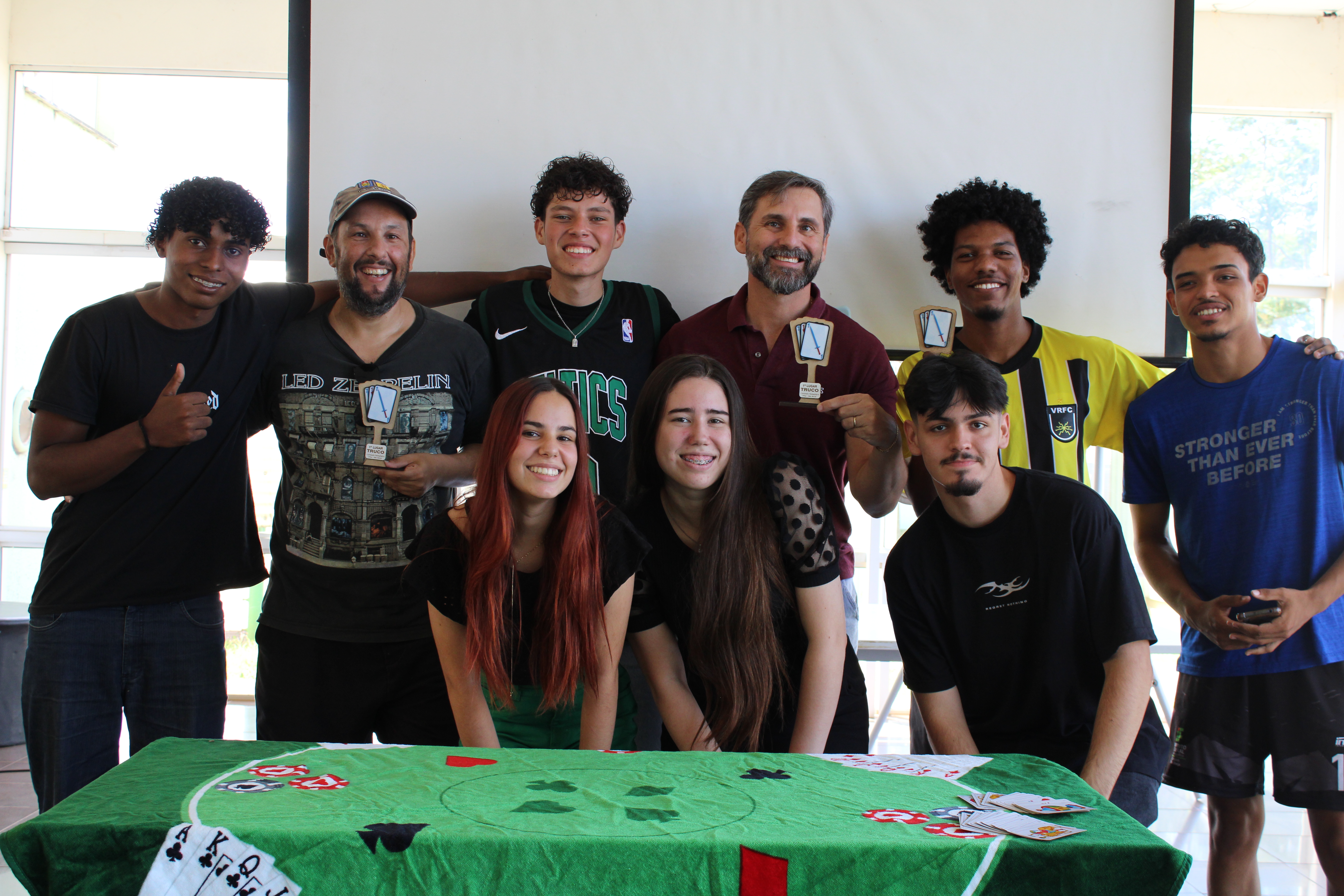 Foto: Alunos e professores disputando uma partida de truco/ASCOM