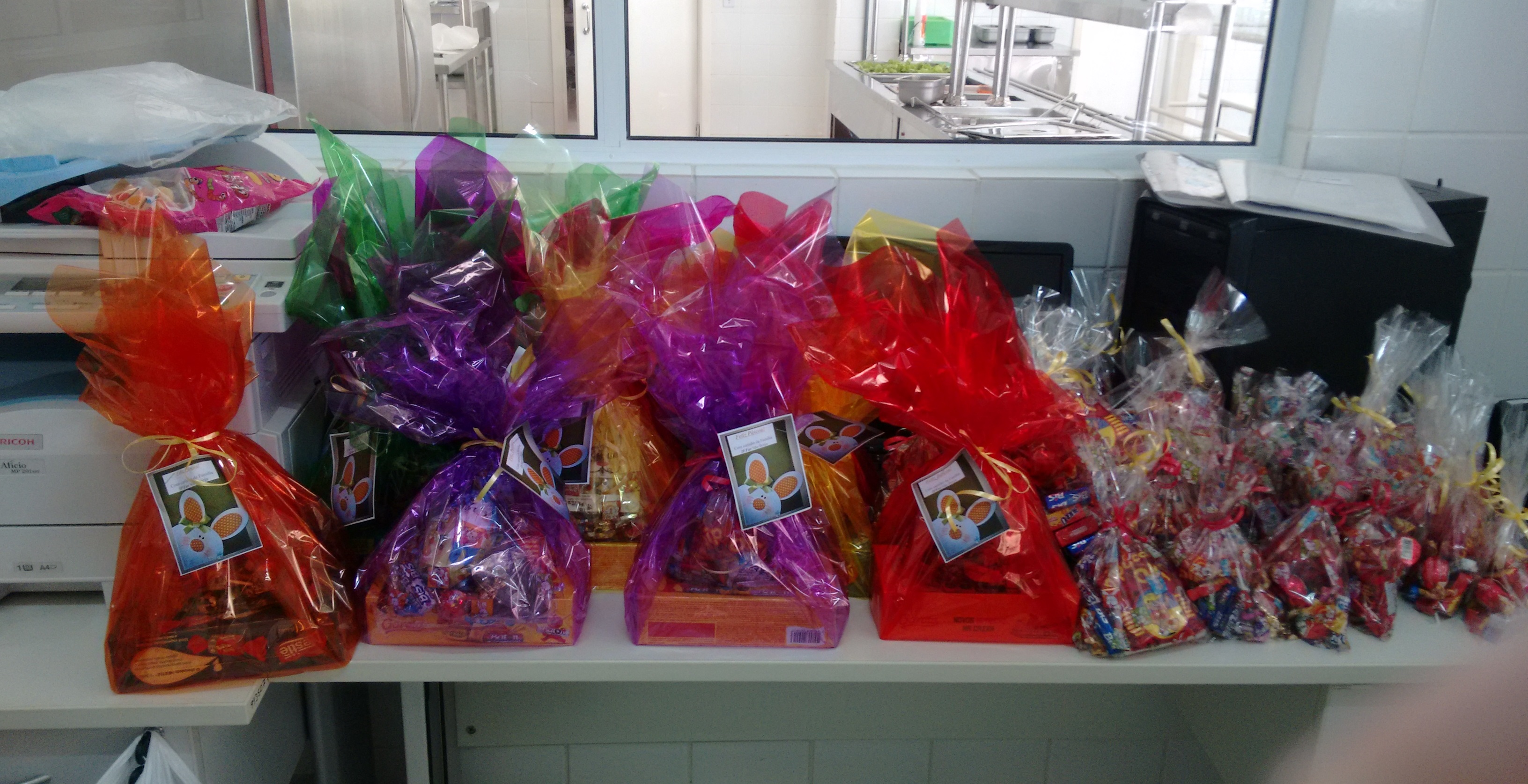 Foto: Cestas e embalagens de Páscoa montadas com as doações/ Liziane Vargas