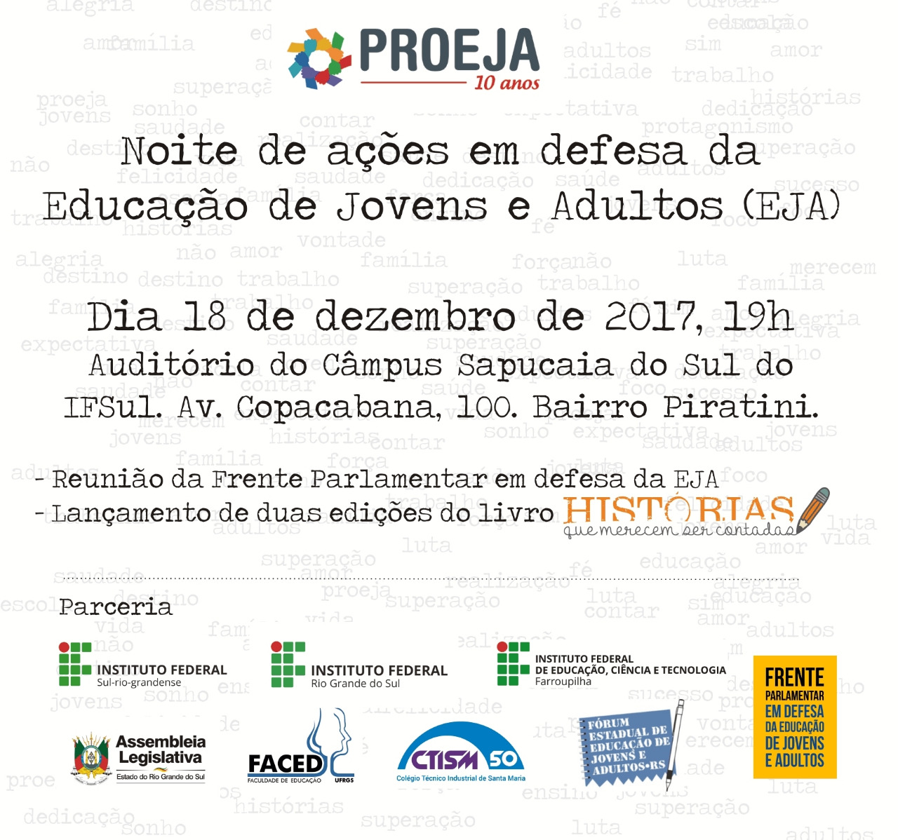 O lançamento ocorrerá na segunda, dia 18 de dezembro, às 19h30, durante a Noite de Ações em Defesa da Educação de Jovens e Adultos (EJA), no Campus Sapucaia do Sul do IFSul.