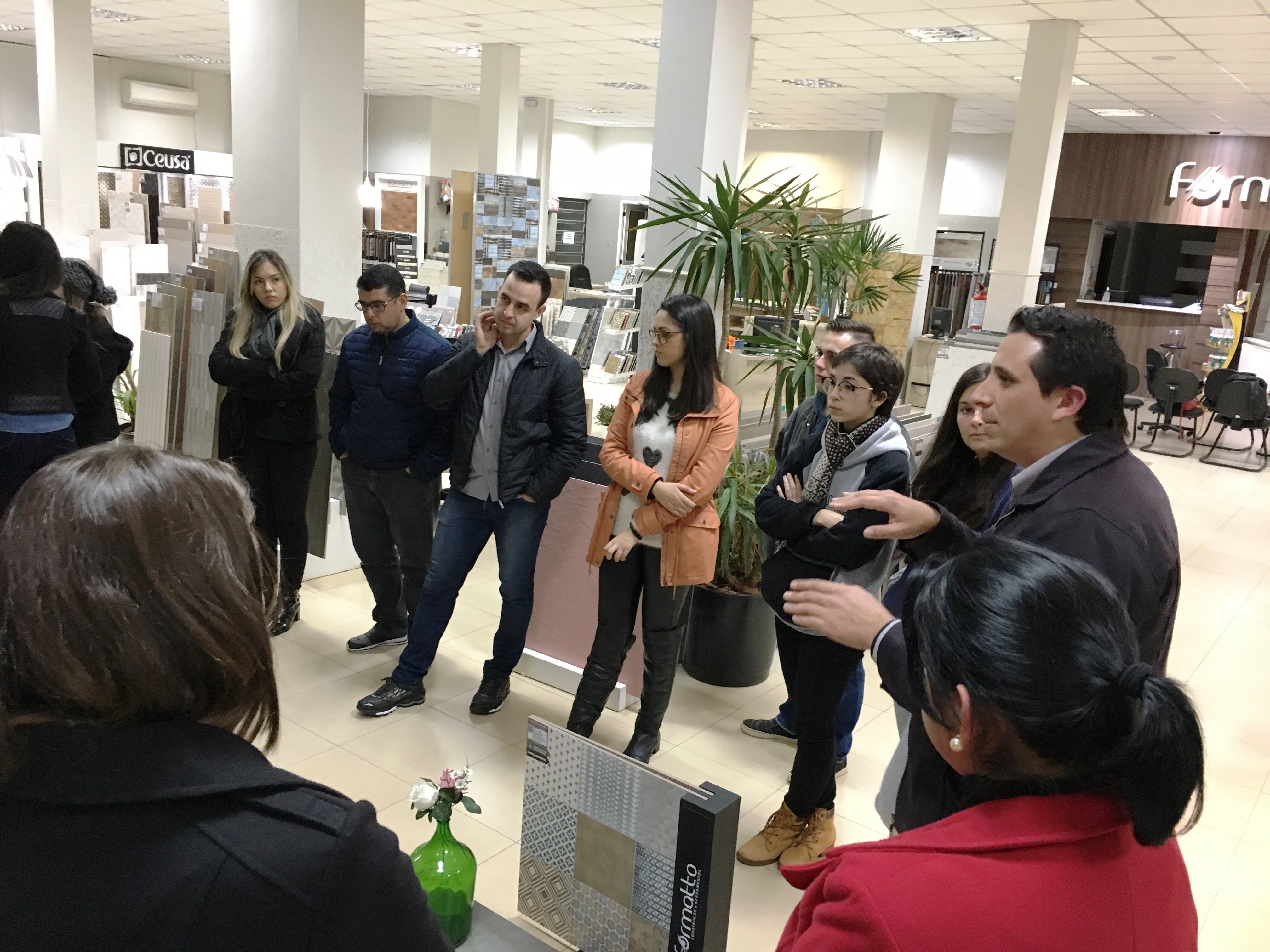 O responsável por recepcionar os estudantes e professoras foi o gerente Thiago Dalla Porta Franco, que contou com a colaboração de mais quatro funcionários da empresa. Cada colaborador foi responsável por mostrar um setor do showroom, salientando as especificações técnicas, usos, aplicações e processo de instalação dos produtos comercializados pela empresa.