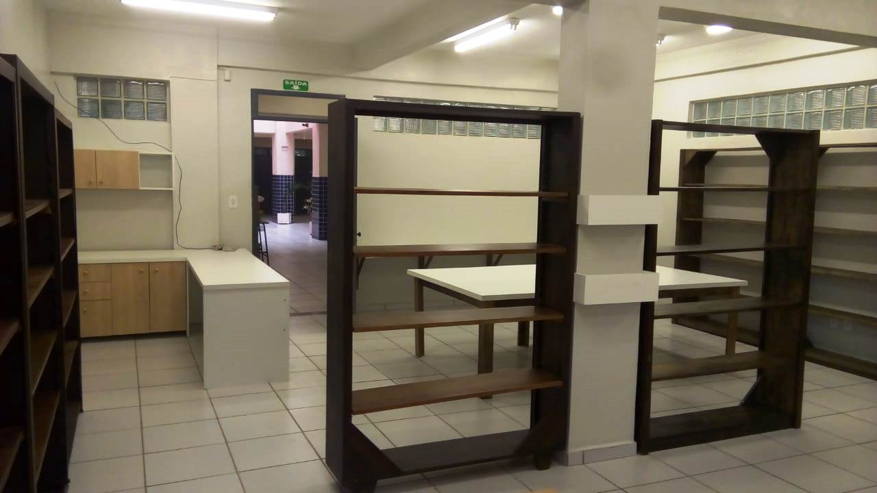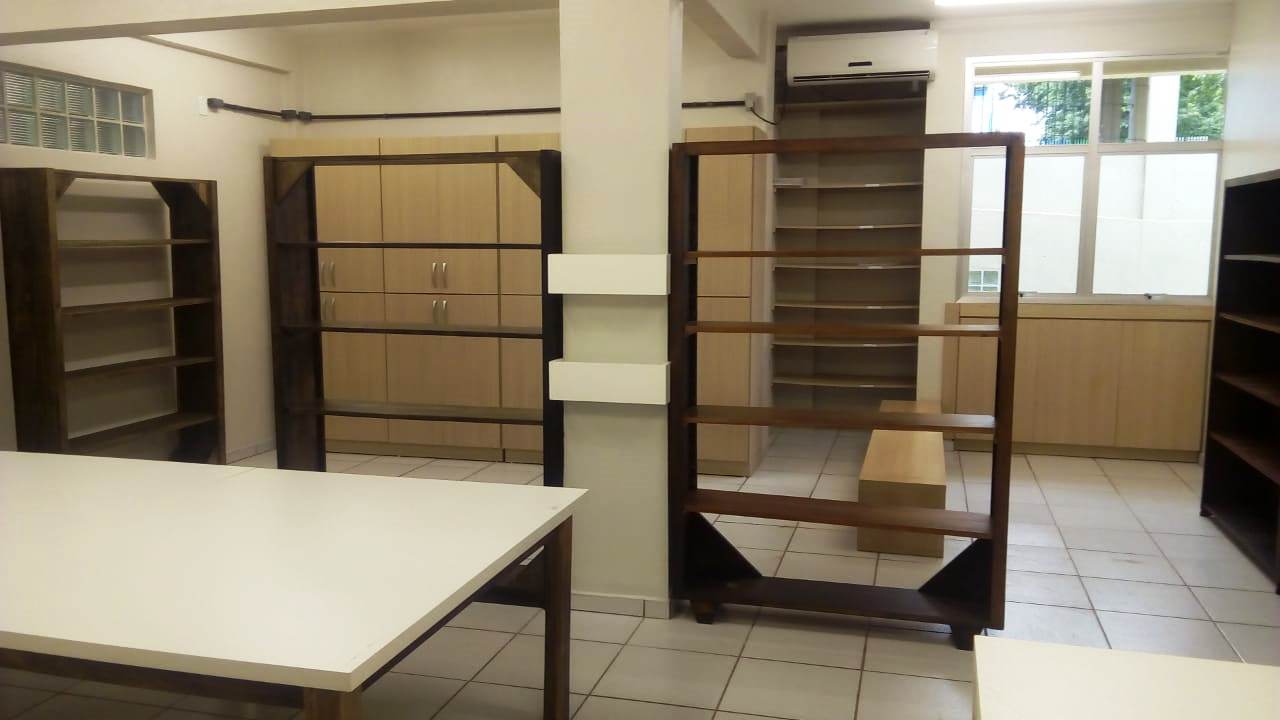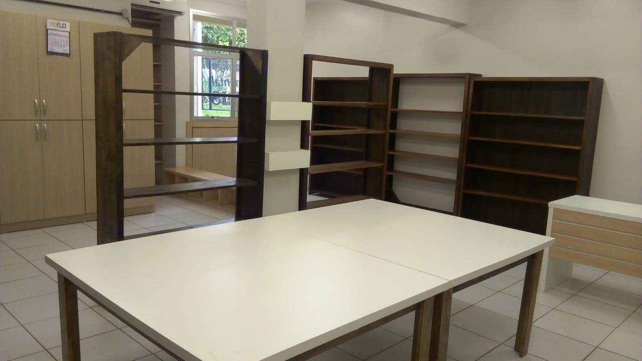 No Laboratório de Móveis do instituto, foram confeccionados os móveis do cantinho das crianças, a mesa da recepção, as prateleiras dos pilares, a mesa grande para a leitura compartilhada e o restauro das prateleiras que dão suporte ao acervo. Além disso, os alunos também fizeram a elaboração do lay out do projeto.