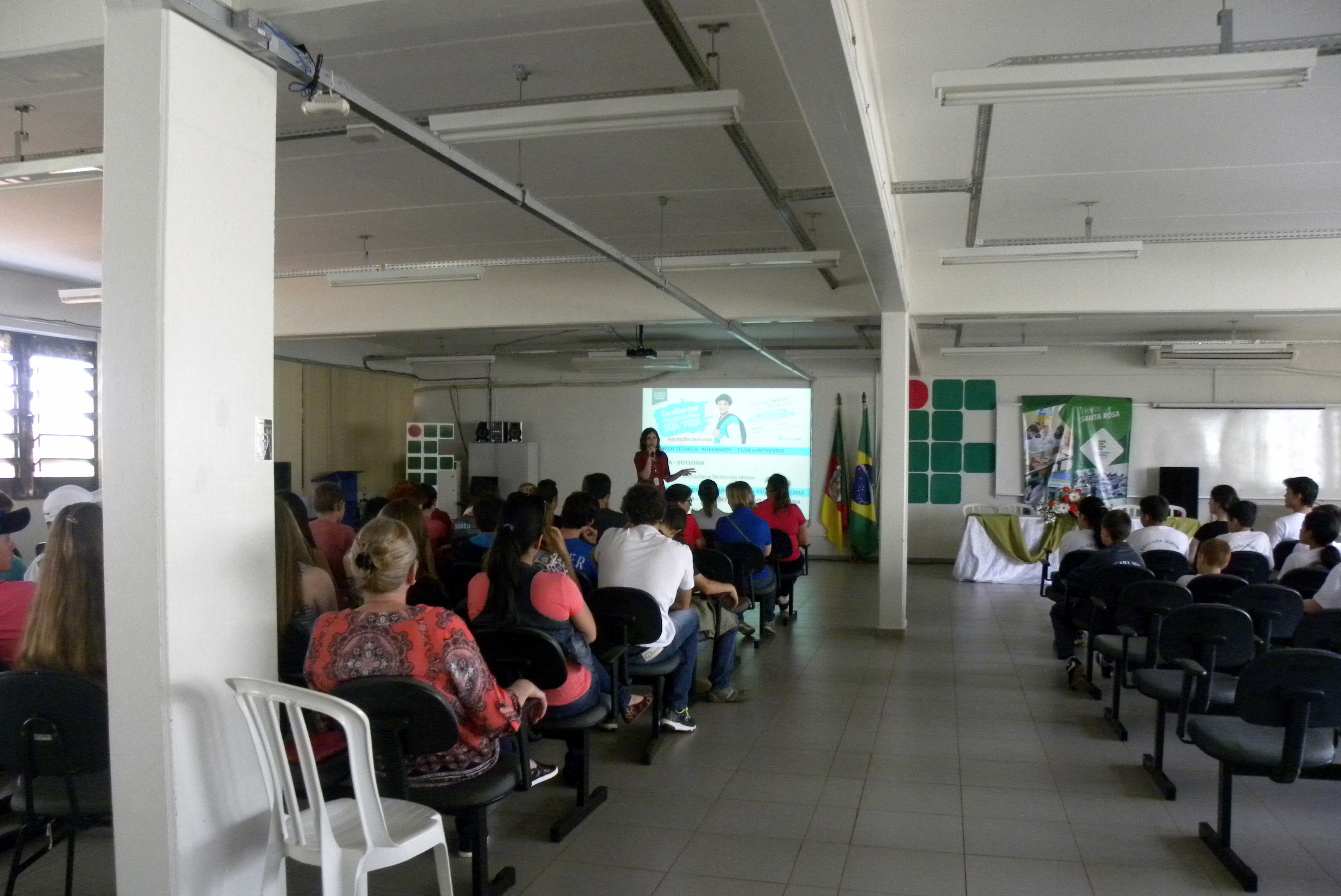 Durante a visita, os alunos assistem ao vídeo institucional do IF Farroupilha e conhecem os laboratórios de Ciências, de Móveis, de Edificações, a Sala de Artes, biblioteca e demais dependências. “Nós damos orientações gerais sobre o processo seletivo, falamos sobre o sistema de cotas e ainda sobre a assistência estudantil”, explica a professora Melissa Walter.