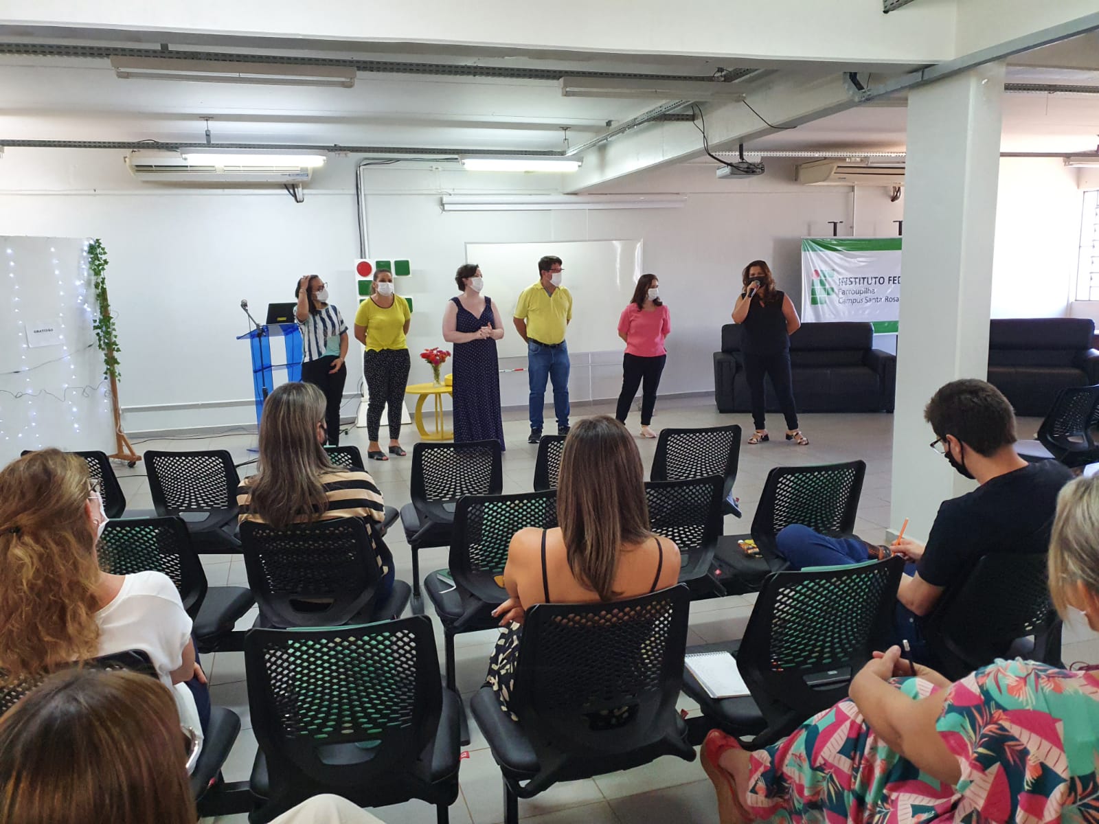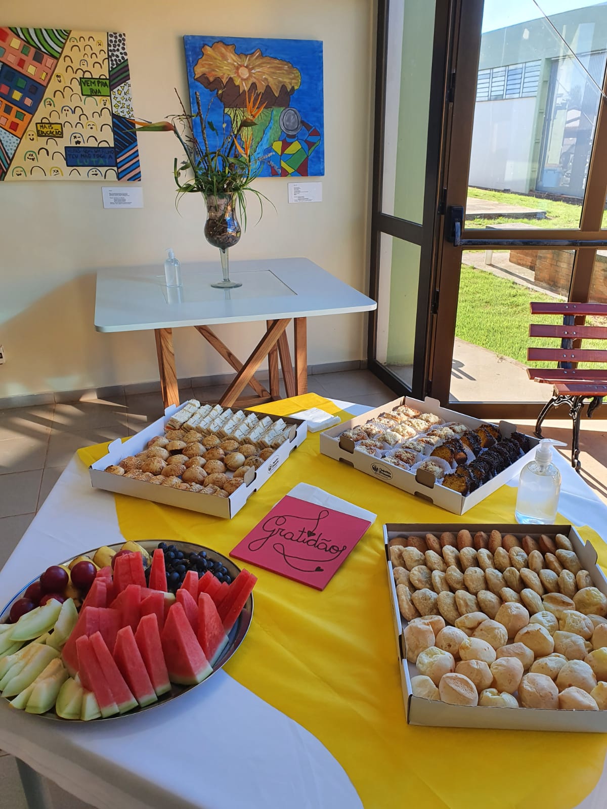 Servidores foram recepcionados no dia 14/02 - com o retorno dos docentes do período de férias, foi preparado um café da manhã especial para marcar o início das atividades de 2022 e a retomada das atividades administrativas presenciais iniciadas em 1 de fevereiro. No auditório, a equipe diretiva deu as boas-vindas, apresentou os servidores novos e agradeceu o trabalho e comprometimento de todos durante os anos de trabalho remoto.