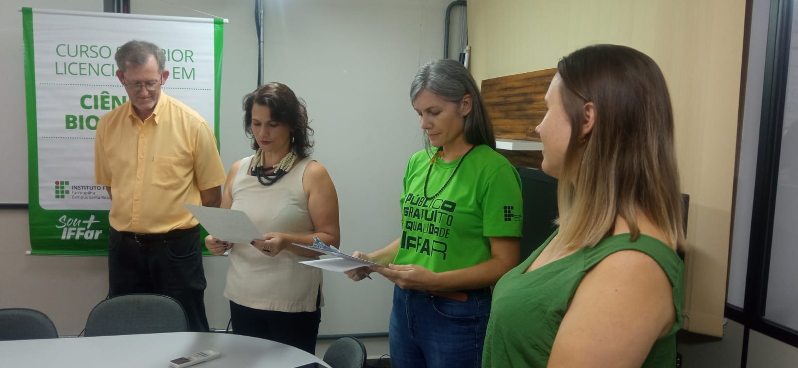 O ato foi presidido pela diretora-geral, Analice Marchezan, e secretariado pelo Coordenador de Registros Acadêmicos, Delmar José Lorscheiter. O momento contou com a presença da Coordenadora do Curso de Licenciatura em Ciências Biológicas, professora Luciane Carvalho Oleques, da Coordenadora da Licenciatura em Matemática, professora Lucilaine Goin Abitante, e da professora do mesmo curso, Daiani Finatto Bianchini.