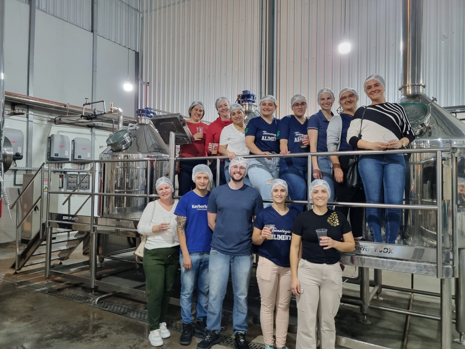 O Curso Superior de Tecnologia em Alimentos – CST e o Curso Técnico em Alimentos – ALP do Instituto Federal Farroupilha - Campus Santa Rosa buscam formar profissionais competentes, com espírito empreendedor, estudando os processos relacionados ao beneficiamento, industrialização e conservação de alimentos. Nesse contexto, foi realizada uma visita técnica para conhecer o processo de fabricação de chopp na empresa Kerberhaus, no município de Santo Cristo. As professoras Gislaine Hermanns, Paula Klaic e Graciele Welter acompanharam os estudantes.