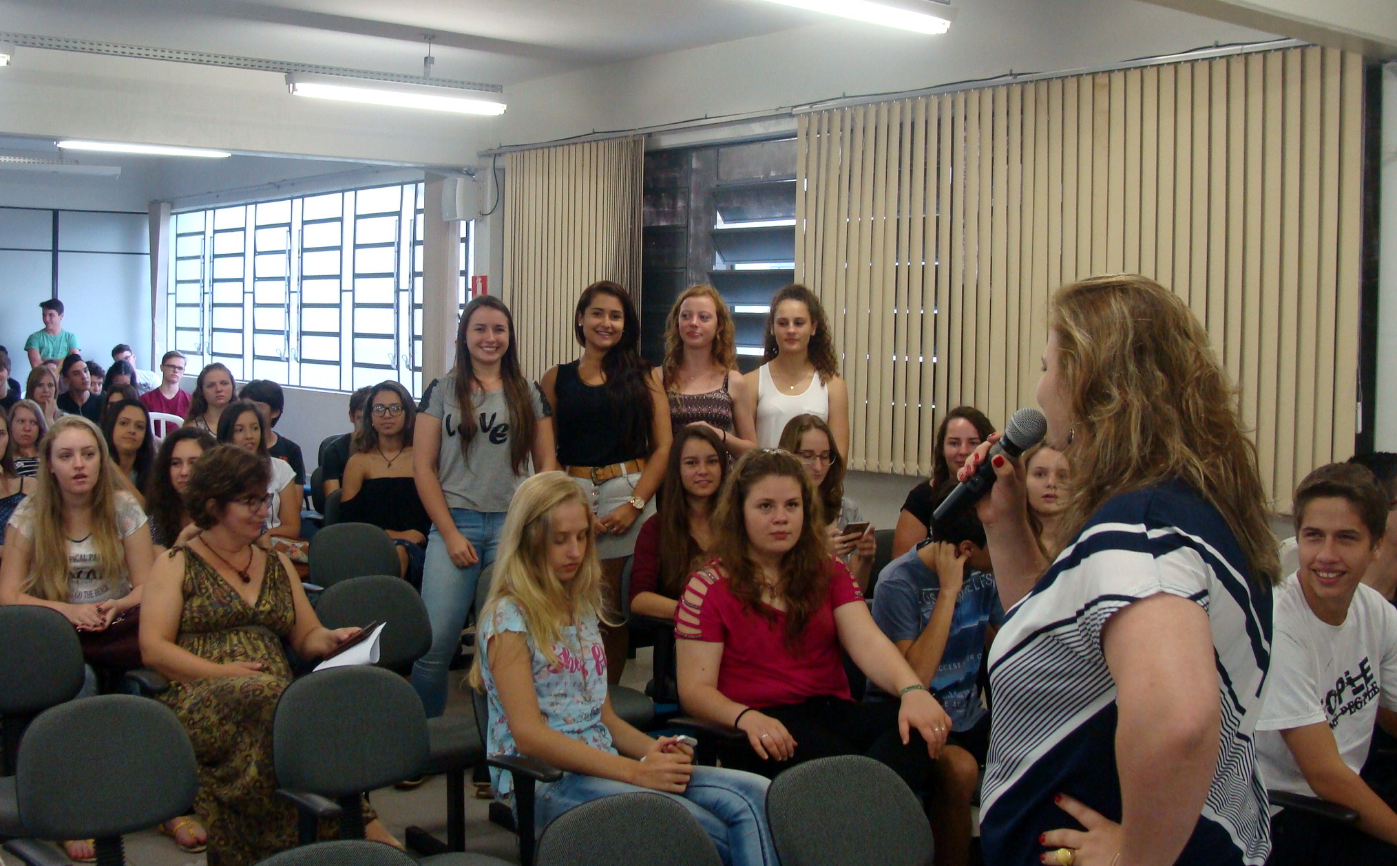 À noite, a recepção aconteceu no auditório, para os alunos dos cursos técnicos Subsequentes, superiores e o Técnico em Vendas Proeja. Além das falas da equipe diretiva e apresentação dos servidores, a ocasião contou com apresentação musical e lanche especial.