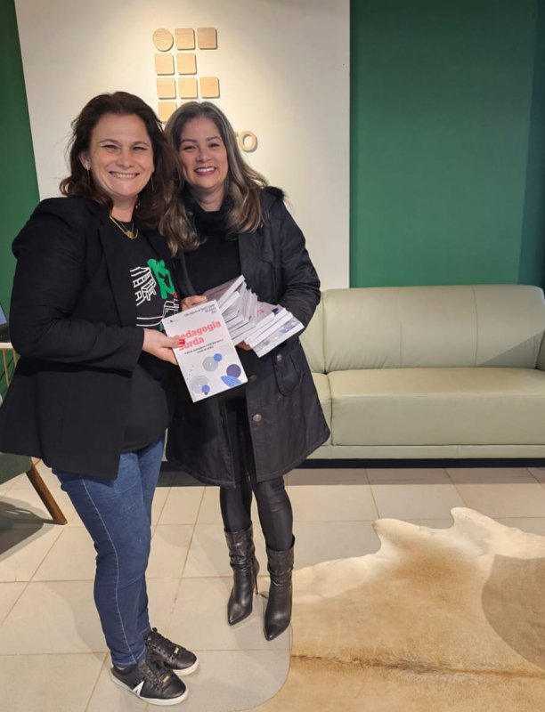 Na ocasião, também foi realizada a divulgação do livro “Pedagogia Surda: Práticas Pedagógicas e Múltiplas para o Ensino de Surdos”, organizado pela profa. Ma. Cátia Roberta de Souza Schernn, que doou 10 exemplares da obra ao IFFar. A publicação tem como propósito incentivar metodologias que promovam a inclusão e o desenvolvimento de alunos surdos em contextos bilíngues.