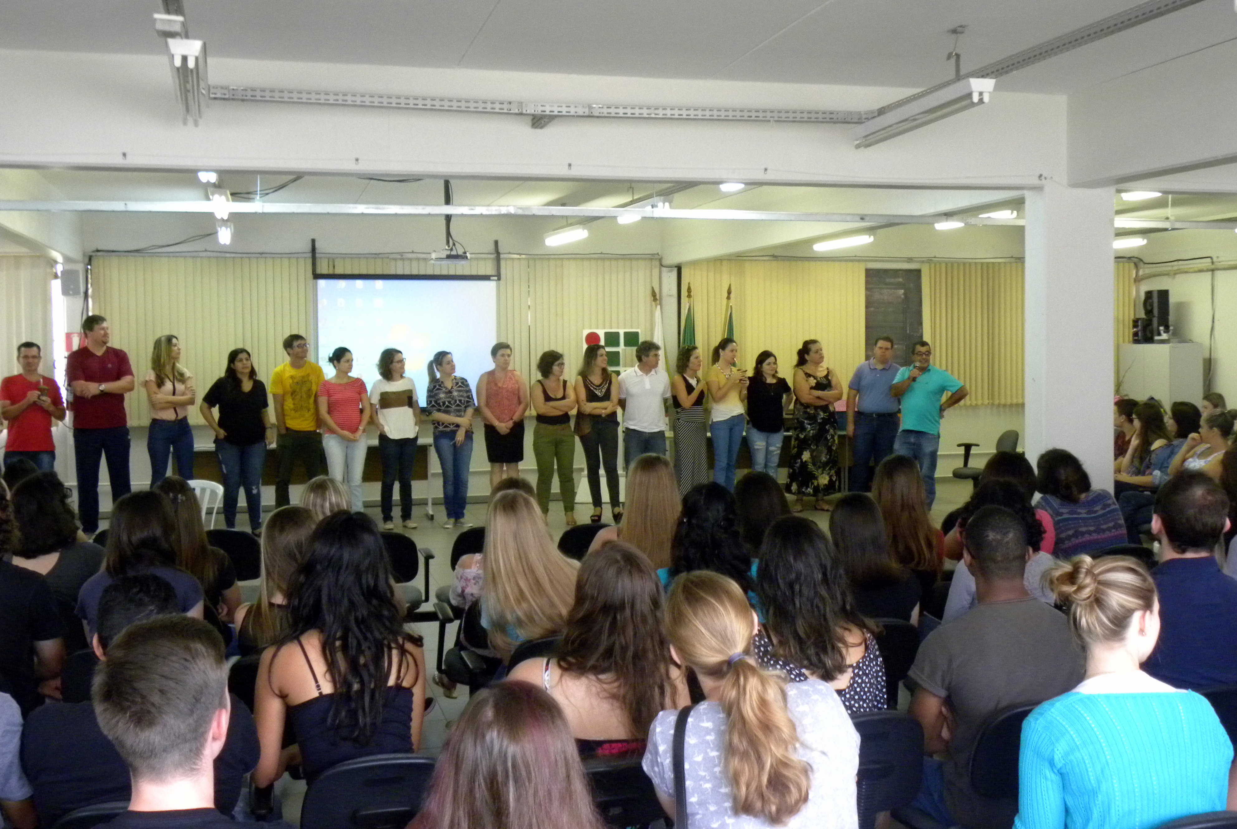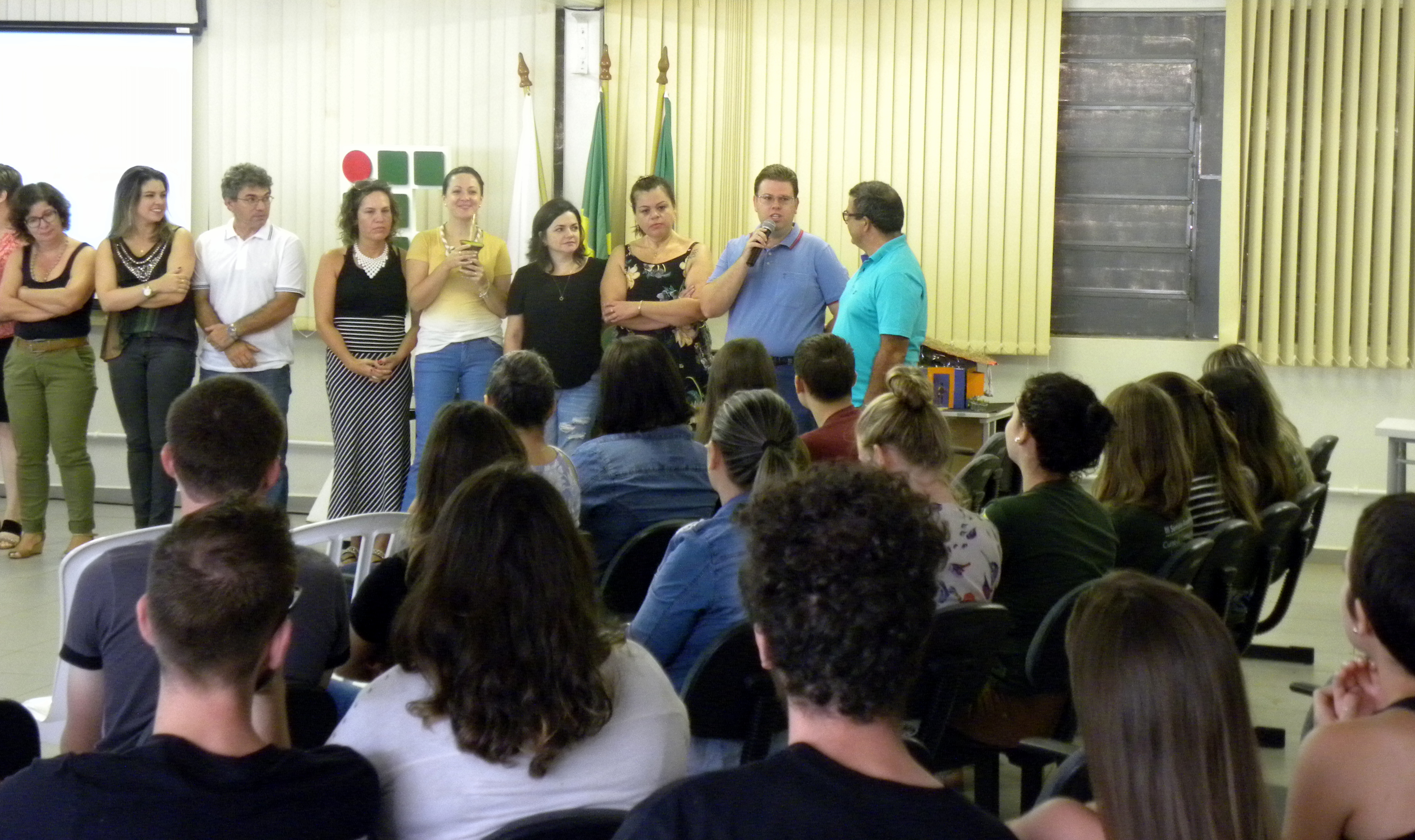 Depois de cerca de dois meses de férias, os alunos dos cursos superiores retornaram às aulas na segunda-feira (26). Nem todas as turmas voltam à ativa ao mesmo tempo: o primeiro semestre da Licenciatura em Ciências Biológicas inicia na próxima terça-feira (06), quando finaliza o Processo de Seleção Simplificado para o preenchimento das vagas remanescentes. A equipe diretiva recepcionou os alunos no auditório pela manhã, onde houve a apresentação do corpo docente e da Assistência Estudantil do Campus. A diretora-geral, Renata Rotta, ressaltou que a graduação também é um período para se exercitar a cidadania e a ética, além do desenvolvimento das capacidades técnicas e profissionais; e para isso, convidou os alunos a participarem da gestão do instituto através da representatividade estudantil.