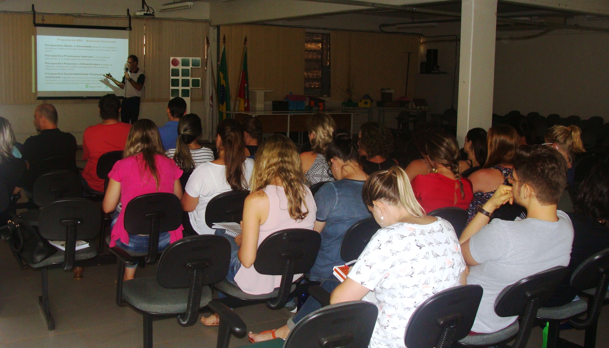 Na tarde de ontem (06), os servidores do IFFar - Campus Santa Rosa reuniram-se no auditório para participar da reunião de sensibilização sobre o Plano de Desenvolvimento Institucional 2019-2026. O professor Claudio Hofler, membro da Comissão de Planejamento Estratégico do PDI, juntamente com a diretora Renata Rotta, destacaram a importância do documento para o planejamento das ações futuras da instituição. O PDI será construído de forma coletiva com ampla participação da comunidade acadêmica e da comunidade de abrangência do IFFar, em encontros realizados ao longo do mês de março.