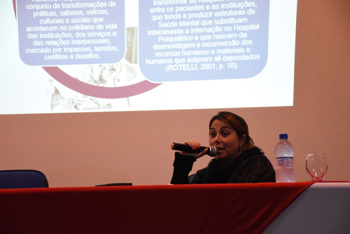 Especialista em Saúde Pública e mestre em Promoção da Saúde, Bibiana abordou movimentos, processos e diretrizes da Reforma Psiquiátrica, que busca a construção de um novo estatuto social para que o indivíduo em sofrimento psíquico tenha assegurada sua cidadania.