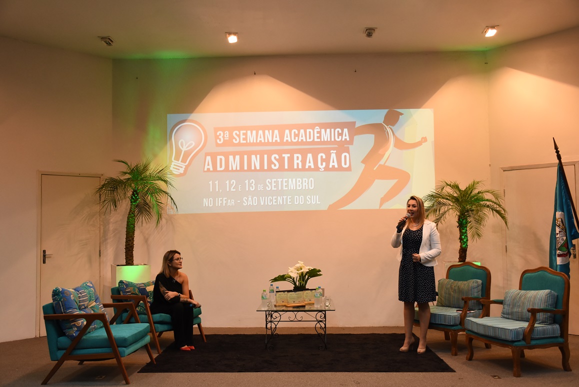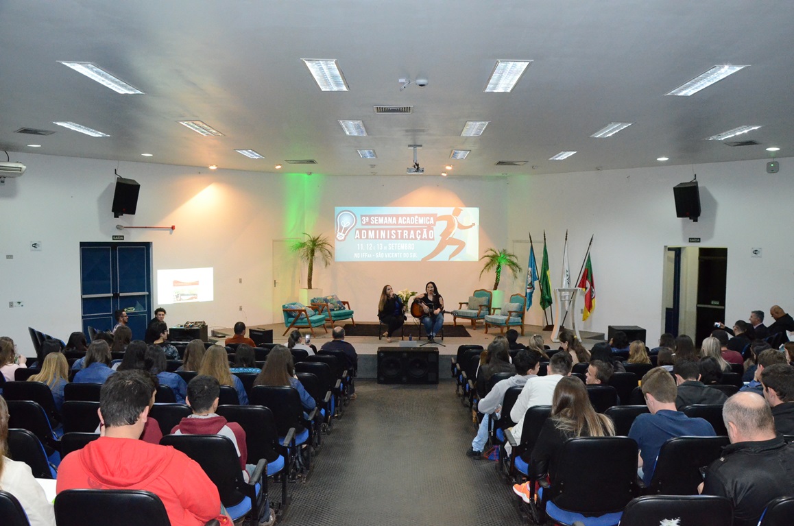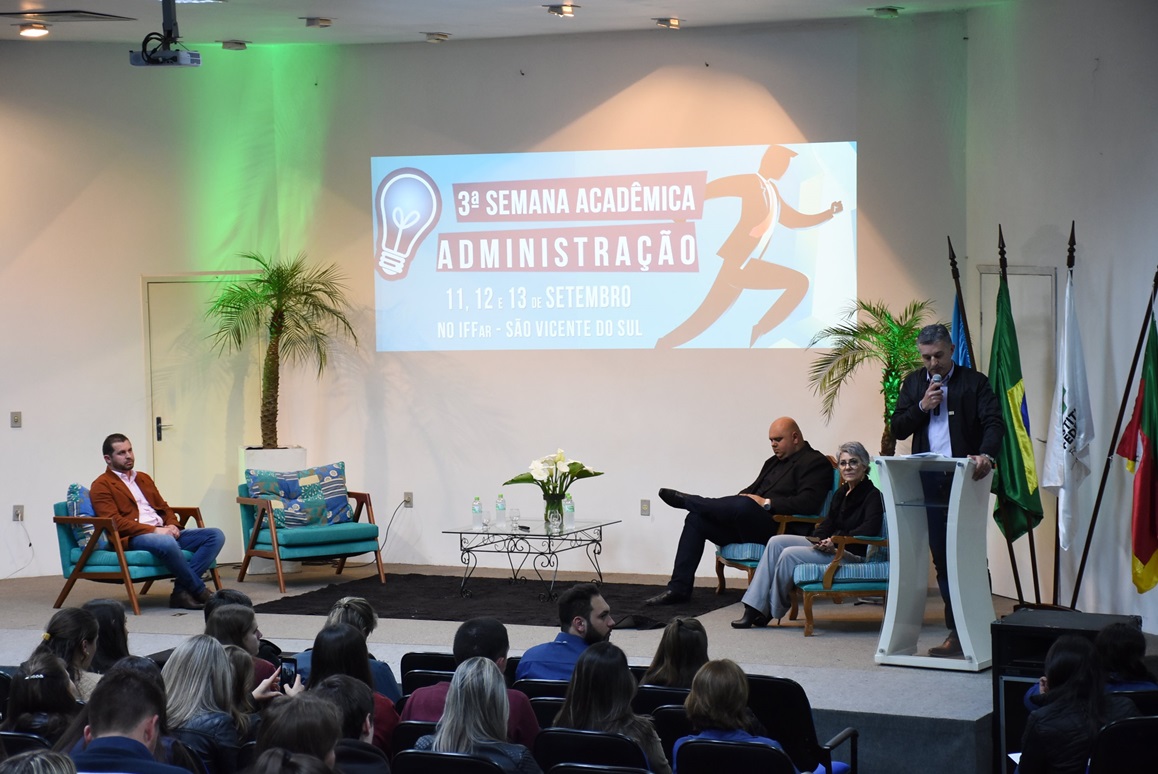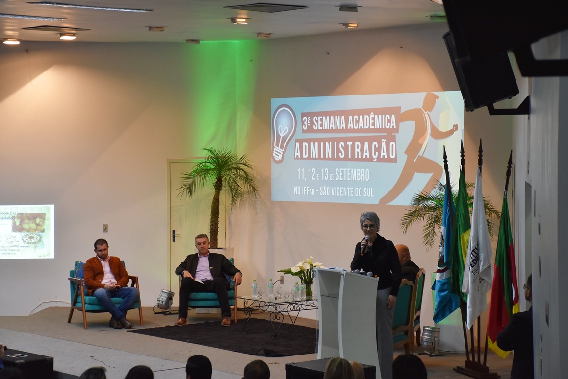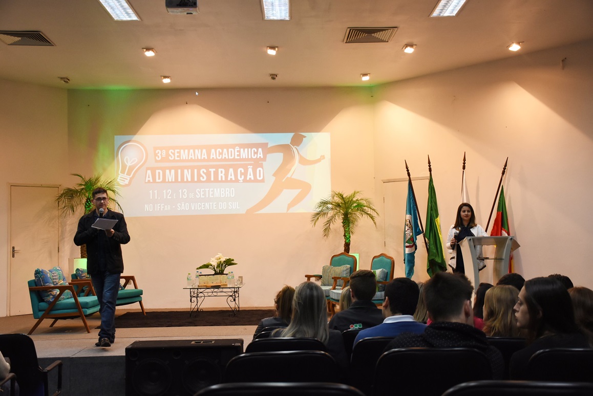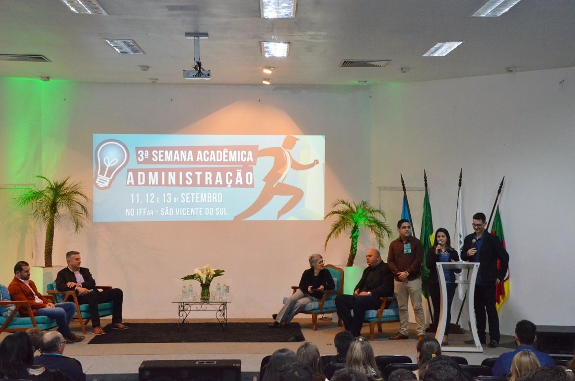 De 11 a 13 de setembro, aconteceu, no Instituto Federal Farroupilha - Campus São Vicente do Sul, a 3ª edição da Semana Acadêmica do Bacharelado em Administração, reunindo cerca de 800 participantes, entre estudantes dos cursos do Eixo de Gestão e Negócios, e também dos cursos de ADS, Agronomia, Agropecuária e Informática, além de membros da comunidade local e servidores da instituição.